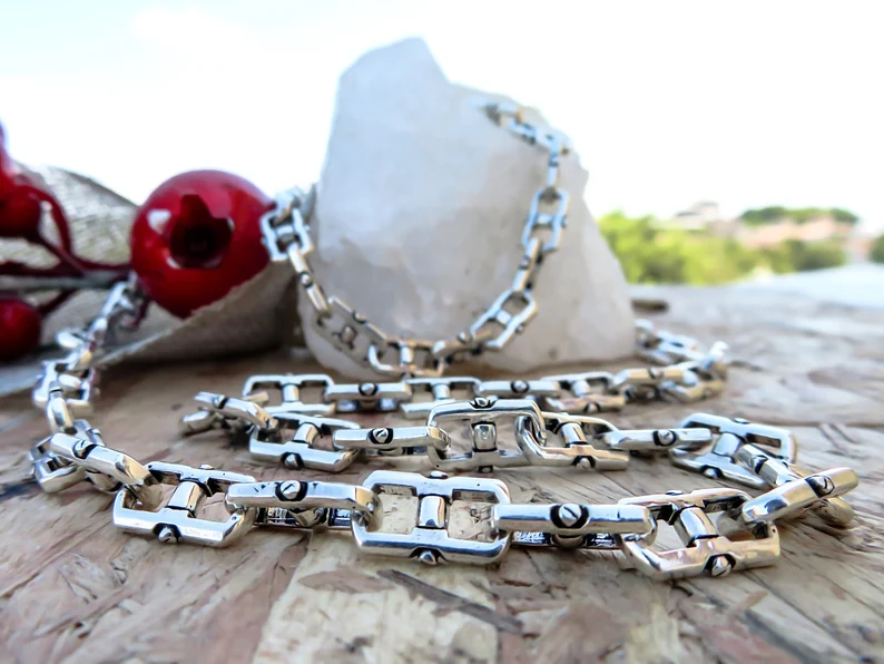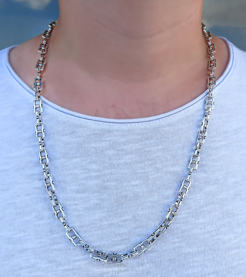 สร้อยคอโซ่เงินสเตอริ่งทำด้วยมือของผู้ชายพร้อมเครื่องประดับแฟชั่นโซ่หนาและเพชรทำจากสแตนเลส