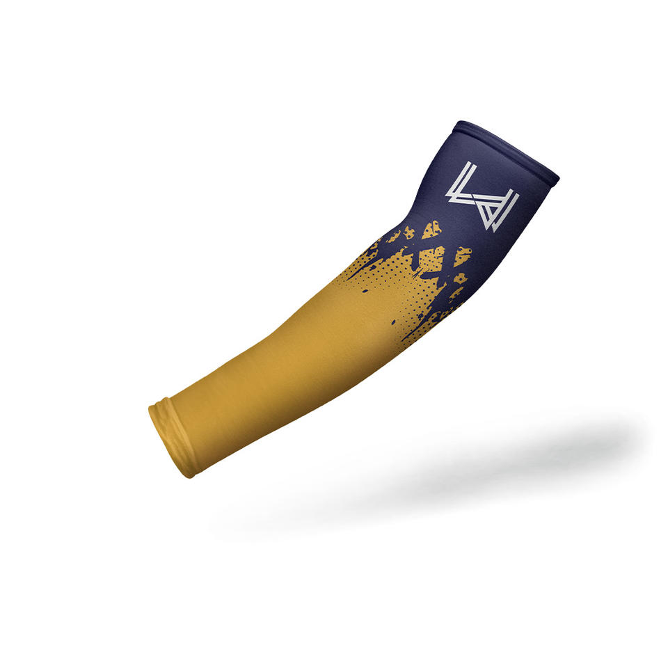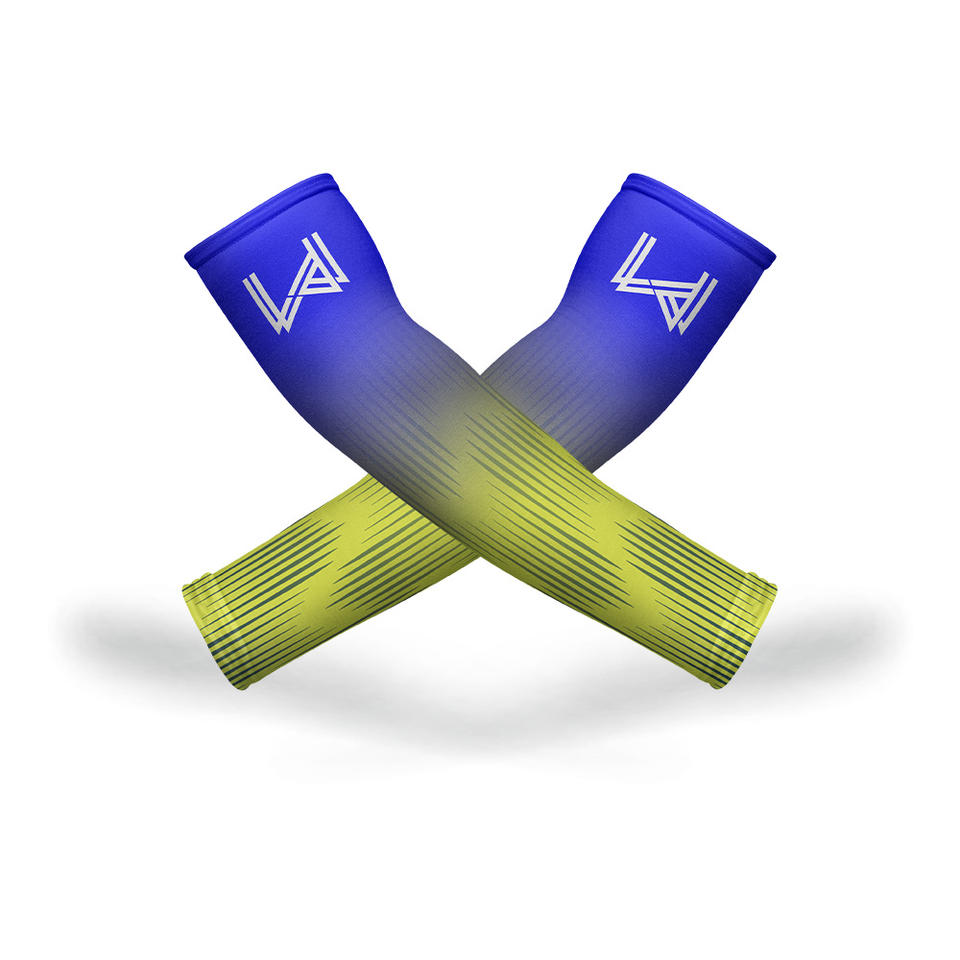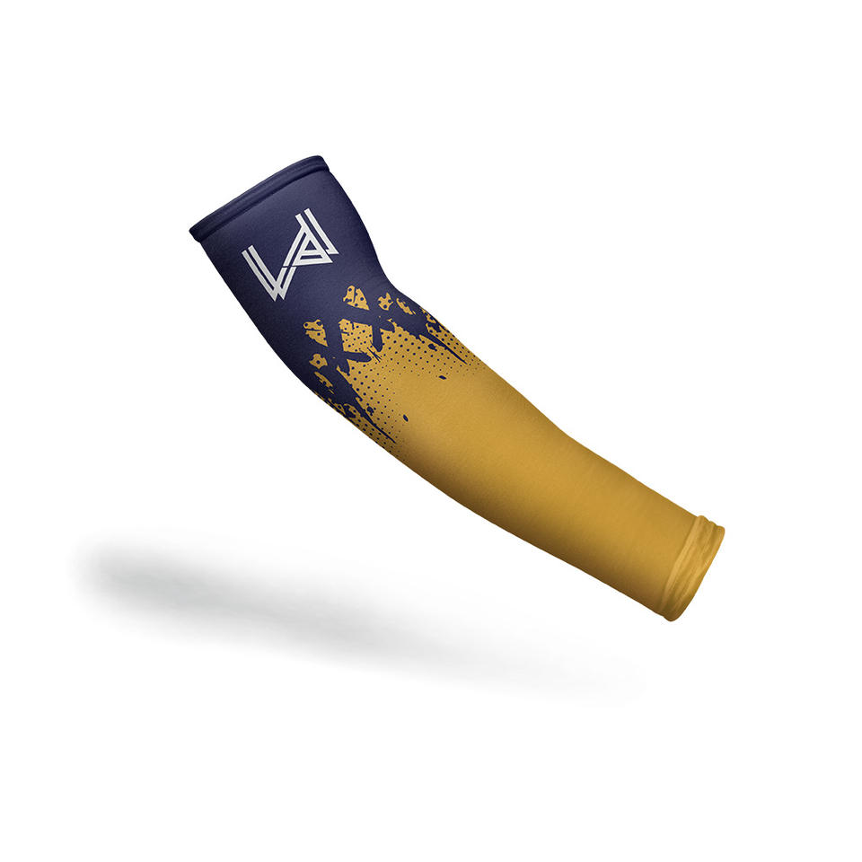 ปลอกแขนกีฬาผู้ชายแบบยาวพิมพ์ลายด้วยความร้อน พร้อมแผ่นรองรับแขน ผลิตจากผ้าโพลีเอสเตอร์ระบายอากาศได้ดี เหมาะสำหรับออกกำลังกายและวิ่ง