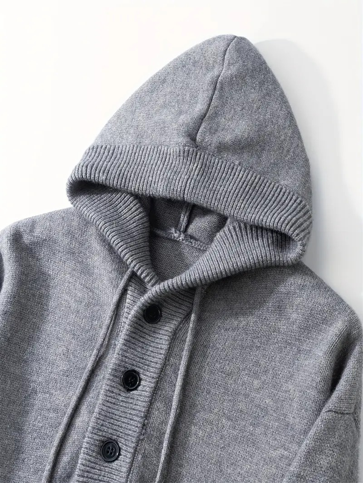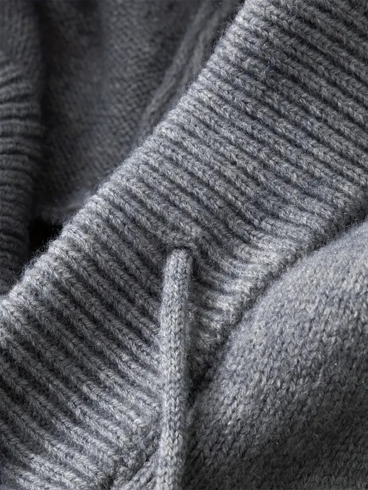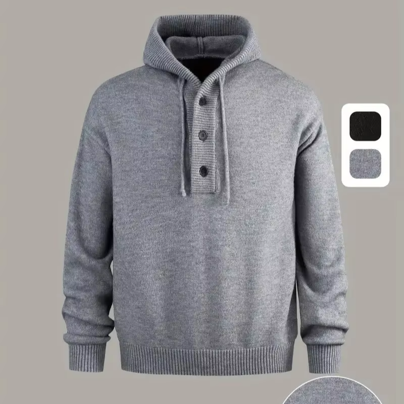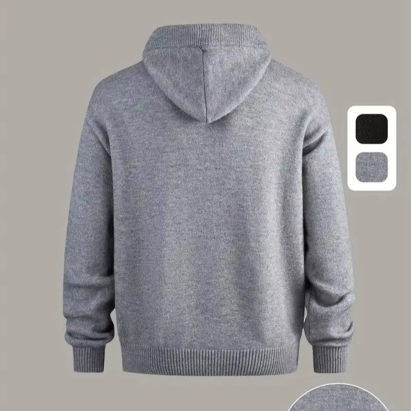 Men's Heavy-Duty Knit Pullover Hooded Sweater with Elastic Ribbed Hem Drop Shoulder Sleeves Half-Zip Design for Fall/Winter BD