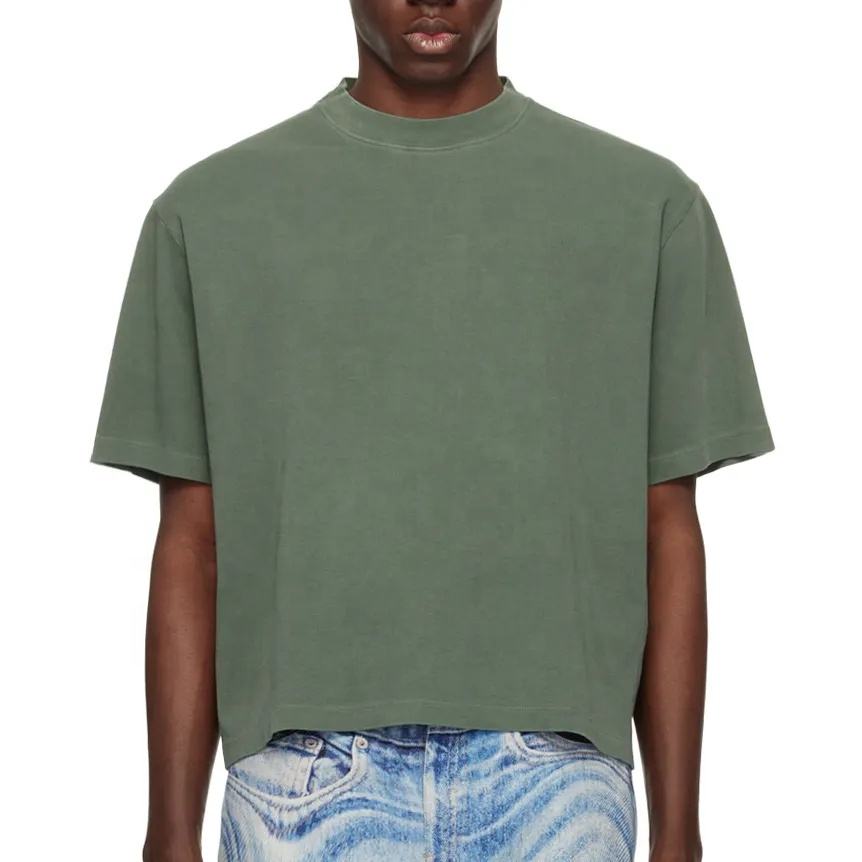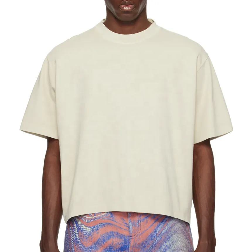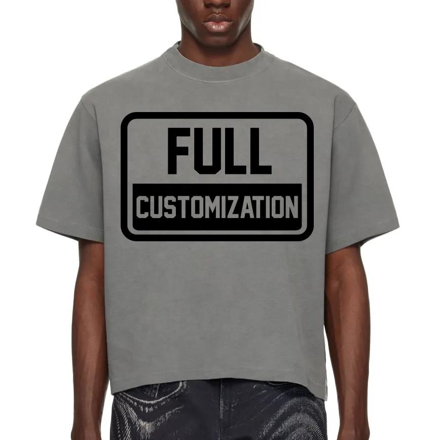 เสื้อยืดครอปผู้ชาย หนัก 220 กรัม ปรับแต่งได้ ทรงปกติ สตรีทแวร์ ผ้าเจอร์ซีย์ 100% คอตตอน ฮิปฮอป โลโก้เรียบ