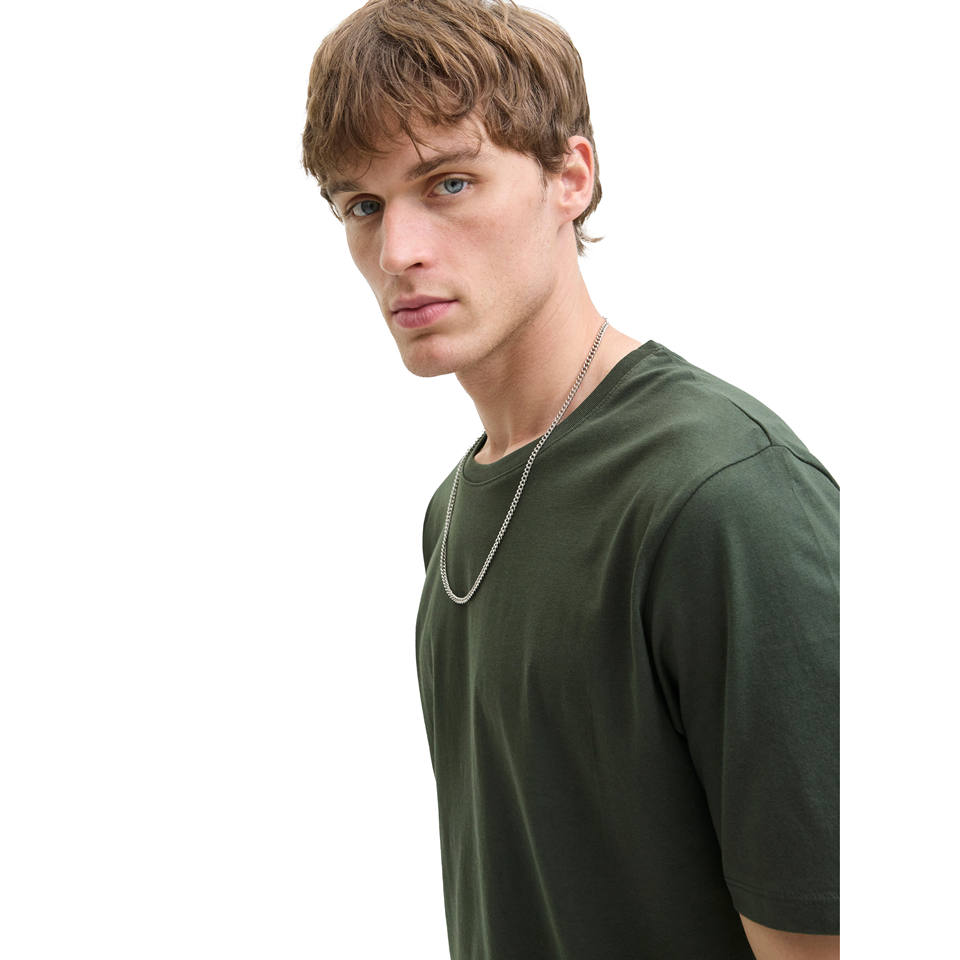 เสื้อยืดผ้าใยไผ่ผ้าฝ้ายหนาพิเศษสำหรับผู้ชายเสื้อคอลูกเรือแบบผูกไหล่ปกติระบายอากาศได้ดีเป็นมิตรกับสิ่งแวดล้อม