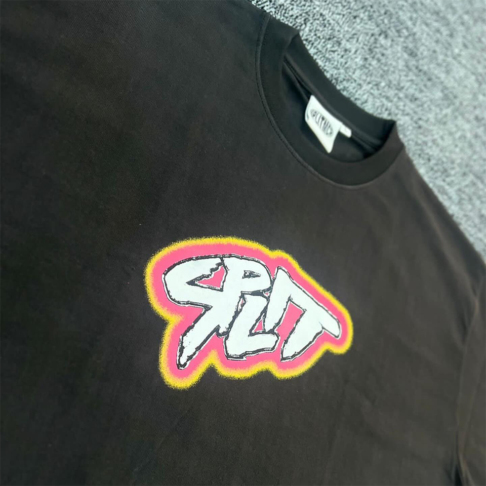 เสื้อยืดกอธิคเฮฟวี่เวทของผู้ชายปรับแต่งได้พิมพ์ลายผีบำบัดโดยตรงเสื้อผ้าสไตล์สตรีทแวร์สีเข้ม100% ผ้าคอตตอนพร้อมโลโก้ด้านหน้า
