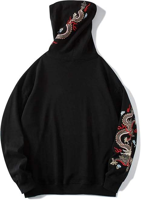 เสื้อฮู้ดกราฟิกแบบหนาของผู้ชายปักลายมังกรปกมีฮู้ดแบบแข็งสำหรับฤดูหนาว