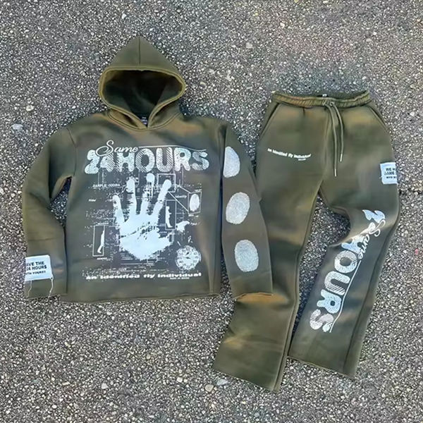 Men's Heavyweight Printed Distressed Zip-up Hoodie Sweatpants Custom Acid Washed Elastic Tracksuit Set Plus Size 2-Piece