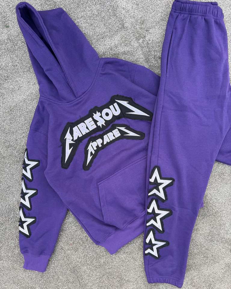 Men’s Heavyweight Stacked Flare Sweatsuit – Embroidered Patch Zip Hoodie with Flared Sweatpants