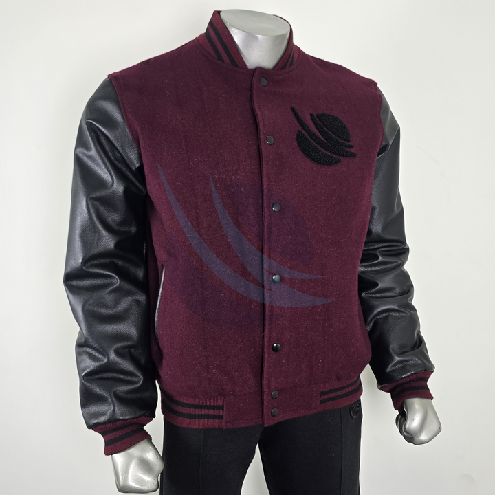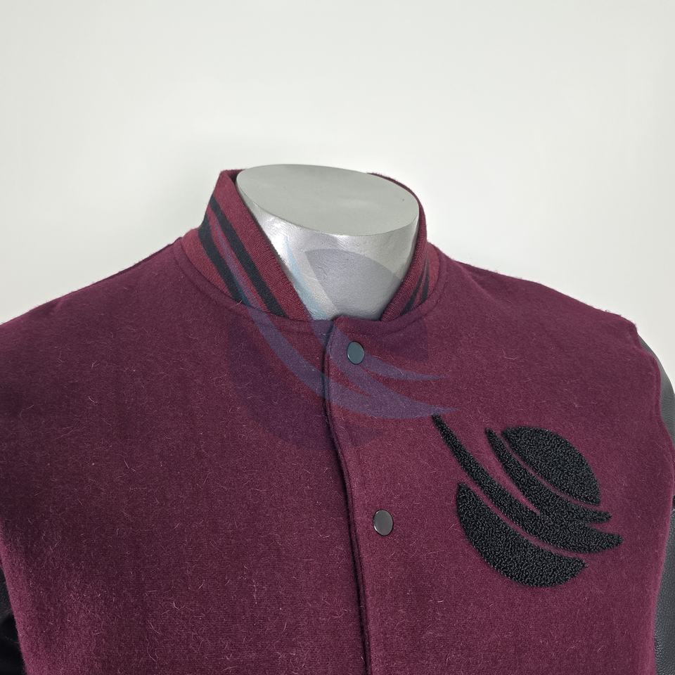 แจ็คเก็ตวาร์ซิตี้ผู้ชาย ผ้าขนสัตว์ แขนหนัง แจ็คเก็ตเบสบอลเลตเตอร์แมน สำหรับฤดูหนาว อุ่นสบาย พร้อมงานปักไหมพรม