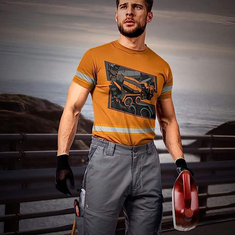 เสื้อยืดแขนสั้นก่อสร้าง Hi VIS ของผู้ชายมีเทปสะท้อนแสงปรับแต่งโลโก้ได้เพื่อความปลอดภัยในการทำงาน