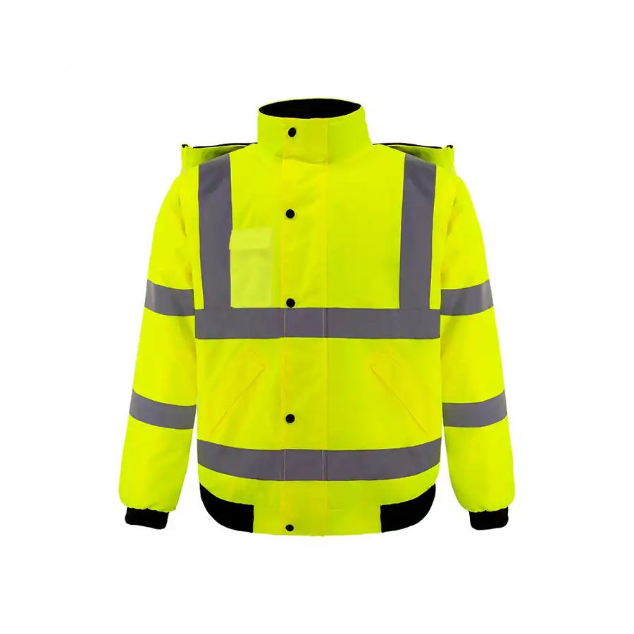 เสื้อแจ็คเก็ตบอมเบอร์สะท้อนแสงกันน้ำสำหรับผู้ชาย สีเหลือง สำหรับงานก่อสร้างและงานกลางแจ้ง เสื้อคลุมเพื่อความปลอดภัยในการทำงาน