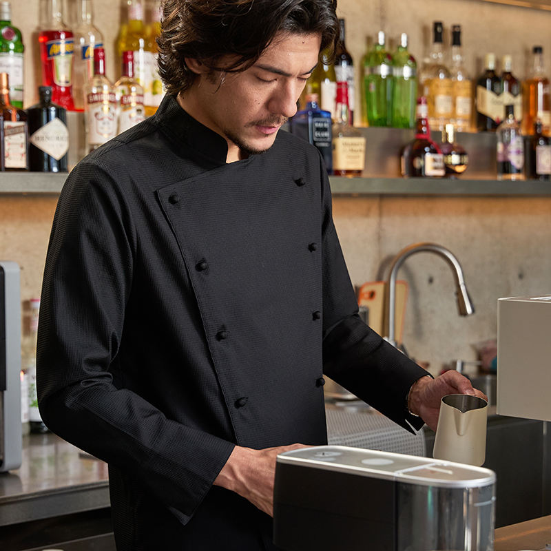 ชุดยูนิฟอร์มเชฟผู้ชาย แขนยาว ผ้าแคนวาสคุณภาพสูง ดีไซน์หรูหรา สำหรับร้านอาหารและบาร์
