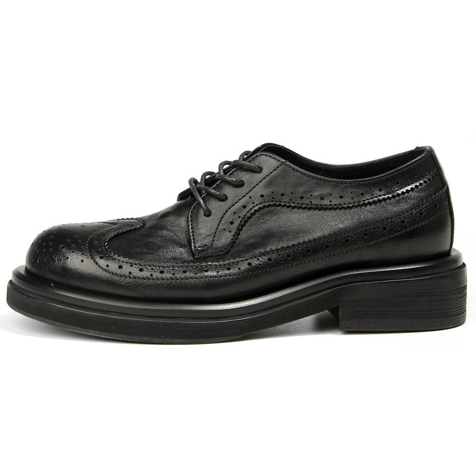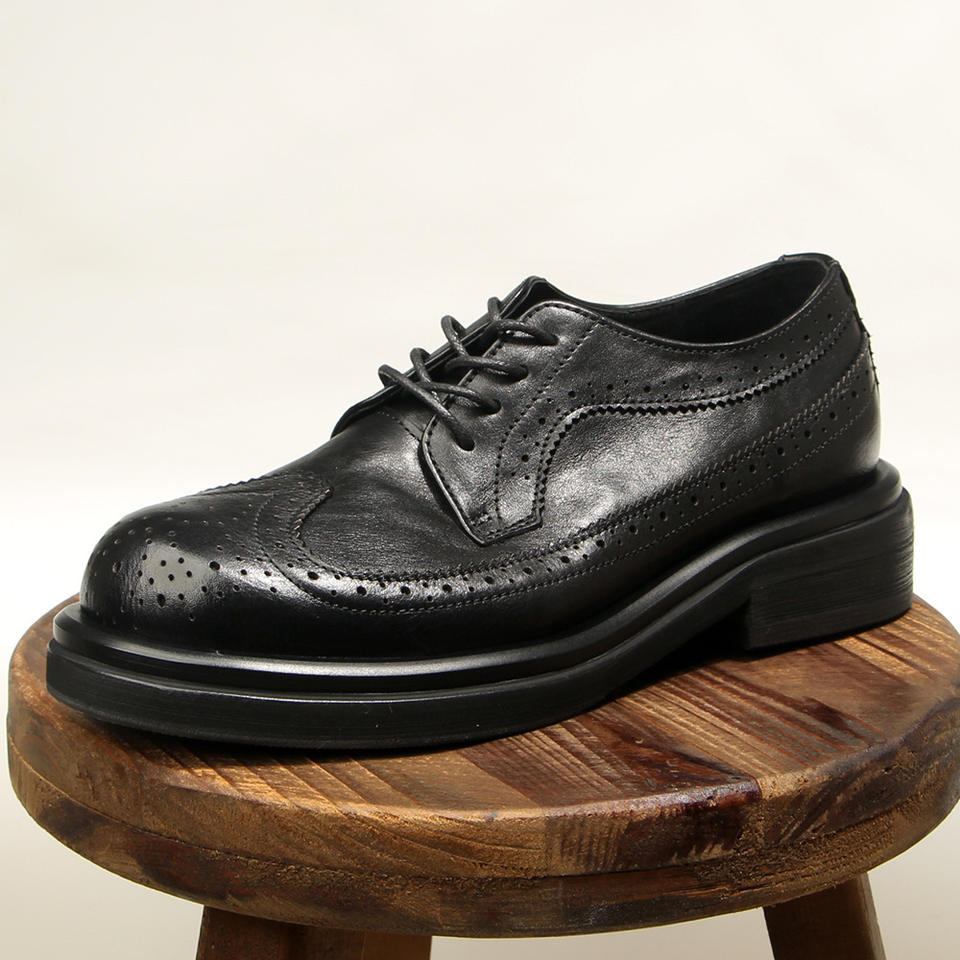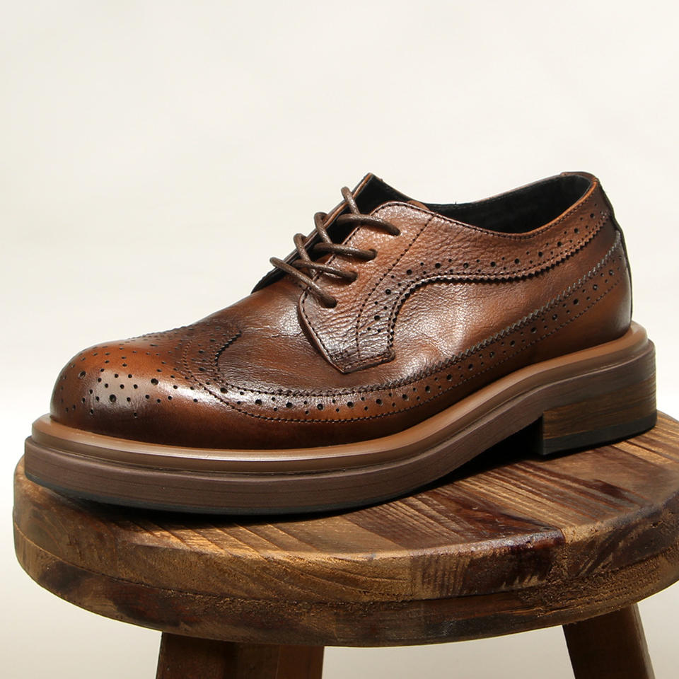 รองเท้าโลฟเฟอร์หนังวัวแท้สไตล์ยุโรปสำหรับผู้ชาย งานแฮนด์เมด ตกแต่งลายปะติด หนังคุณภาพสูง หัวเหลี่ยม ปิดแบบผูกเชือก