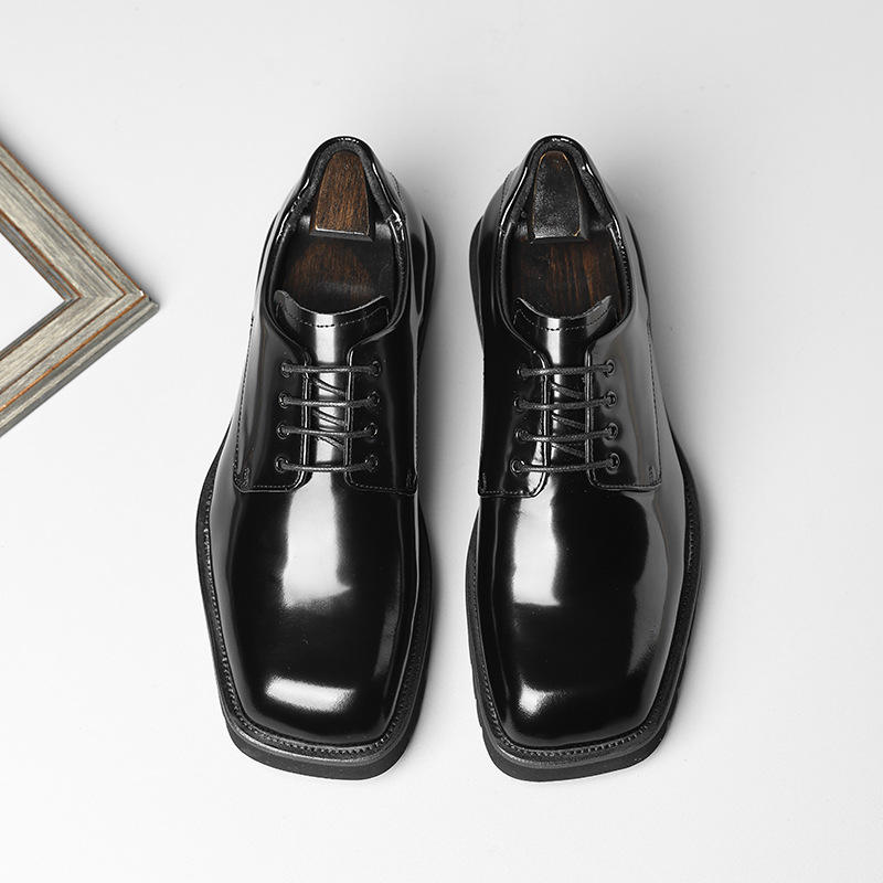 รองเท้าเดอร์บี้หนังแท้คุณภาพสูงสำหรับผู้ชาย ระบายอากาศได้ดี แบบผูกเชือก พิมพ์ลายด้วยเลเซอร์ พื้นนุ่ม สวมใส่สบาย