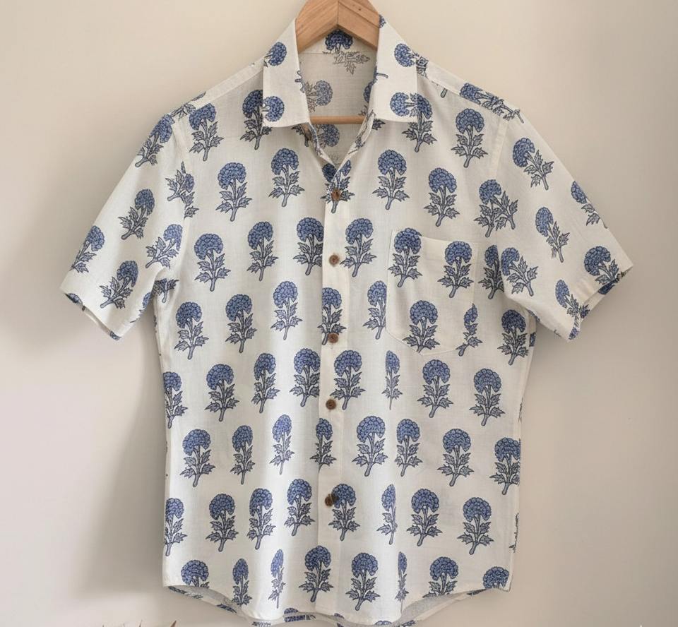เสื้อเชิ้ตผู้ชายคุณภาพสูง ผ้าฝ้าย 100% ลายบาติก ลายเส้นวาดมือ พิมพ์ลาย ปกคอปก แขนสั้น ติดกระดุมเม็ดเดียว