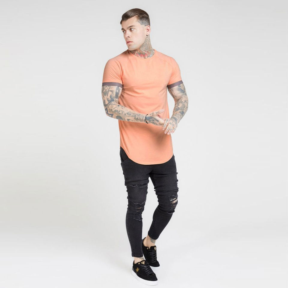 เสื้อยืดคอตตอน100% ของผู้ชาย5% สแปนเด็กซ์เข้ารูปคอกลมผ้าคอตตอน95% ออกแบบโลโก้ได้ตามต้องการ