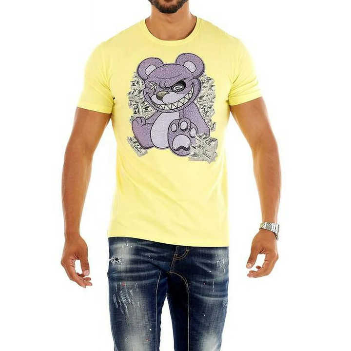 เสื้อยืดผู้ชายคุณภาพสูง ผ้าฝ้าย 100% ทรงปกติ สตรีทแวร์ ผ้าเฟรนช์เทอร์รี่ ประดับเพชรเทียม โลโก้สั่งทำพิเศษ แขนสั้น ติดด้านหน้า