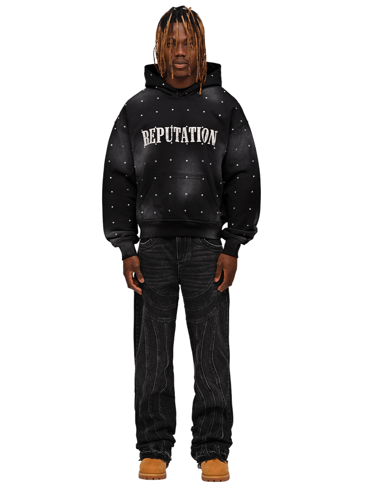 เสื้อฮู้ดเปิดไหล่ผ้าฝ้าย100% โอเวอร์ไซส์สำหรับผู้ชายผ้าลินินประดับพลอยเทียมสีซีดผลิตจากปากีสถาน