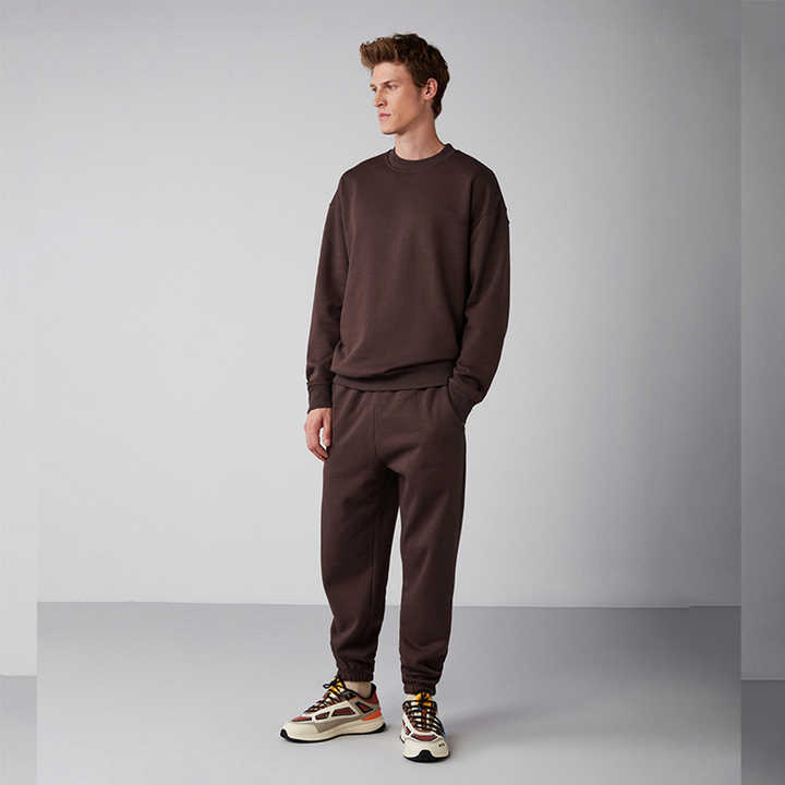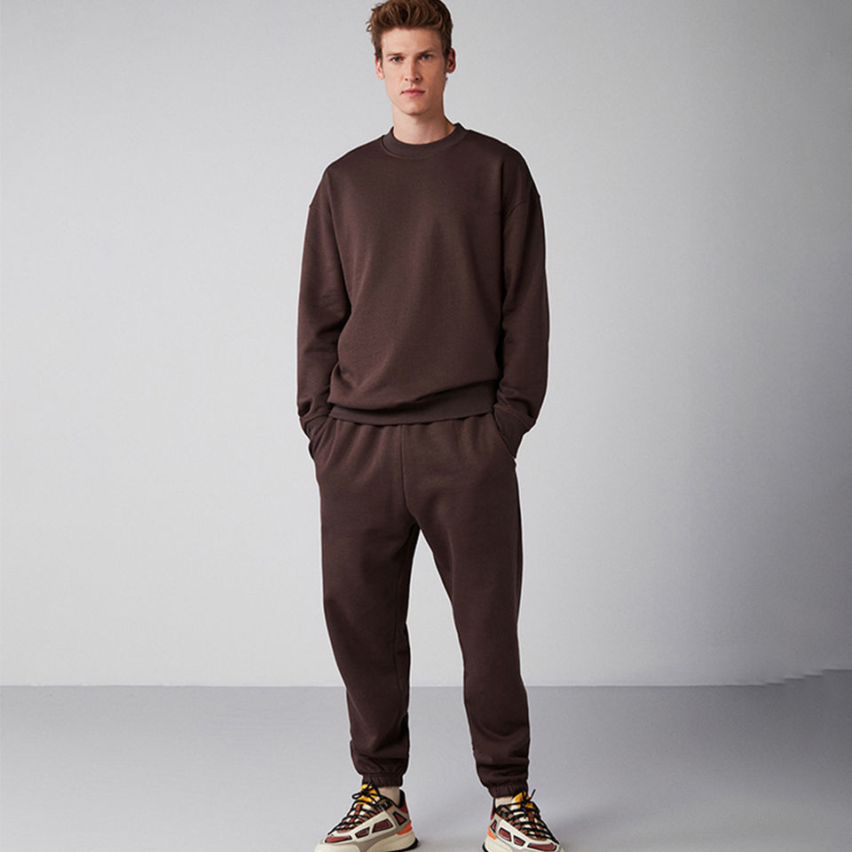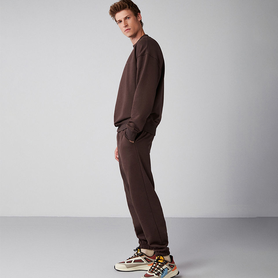 ชุดวอร์มผ้าฝ้าย100% มีฮู้ดและกางเกงวอร์มพิมพ์ลายนูนสำหรับผู้ชาย