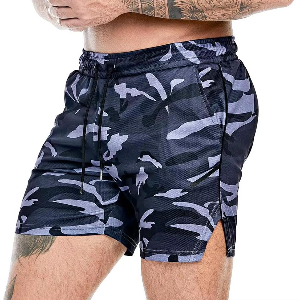 กางเกงขาสั้นออกกำลังกายผู้ชายคุณภาพสูง ผ้าแคนวาสโพลีเอสเตอร์ 100% ระบายอากาศได้ดี แห้งเร็ว สีพื้น รับสกรีนโลโก้ เอวยางยืด
