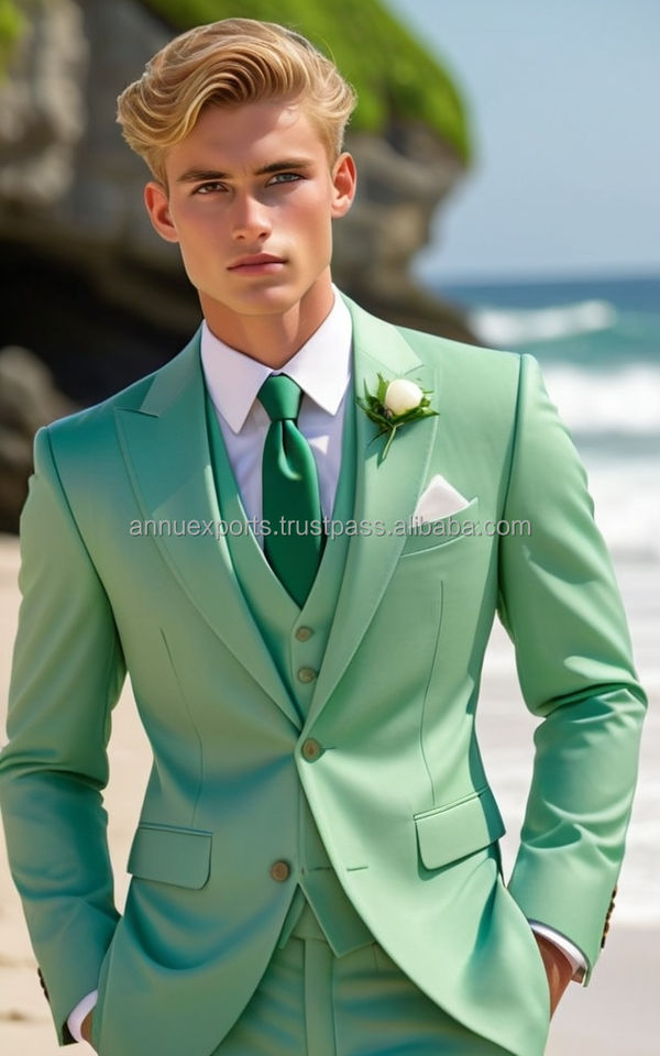 ทักซิโด้ทางการคุณภาพสูงสำหรับผู้ชายชุดสูทเจ้าบ่าวแต่งงานชายหาดฤดูร้อนสไตล์สตรีทแบบลำลอง3ชิ้นขนาดพิเศษและระบายอากาศได้ดี