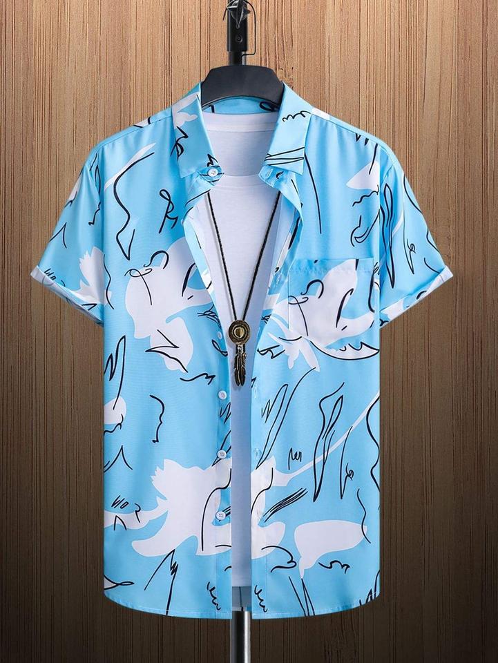เสื้อเชิ้ตฮาวายลำลองคุณภาพสูงสำหรับผู้ชาย แฟชั่นลายพิมพ์ แขนสั้น เสื้อชายหาด ใส่สบาย สไตล์ลำลองประจำวัน ผ้าถัก 100%