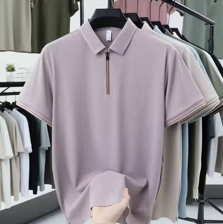 เสื้อโปโลแขนสั้นสำหรับผู้ชายมีซิปปิดแฟชั่นพิมพ์ลายระบายอากาศได้ดีดูดซับความชื้น