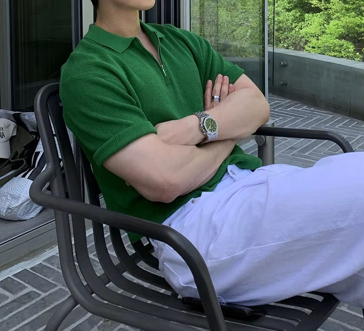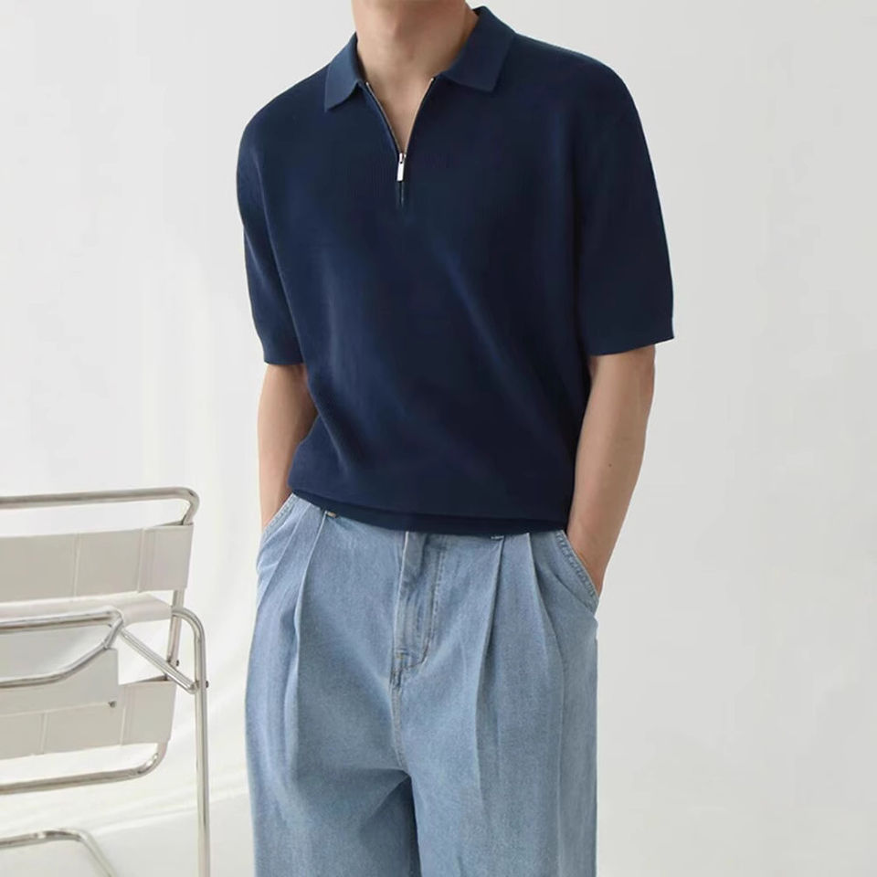 เสื้อยืดผู้ชายคุณภาพสูง ผ้าฝ้ายแท้ 100% ผ้าถักเนื้อนุ่ม ระบายอากาศดี ดีไซน์กันยับ ซิปแบบสั่งทำพิเศษ