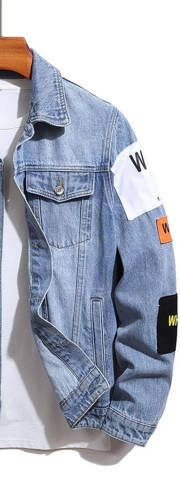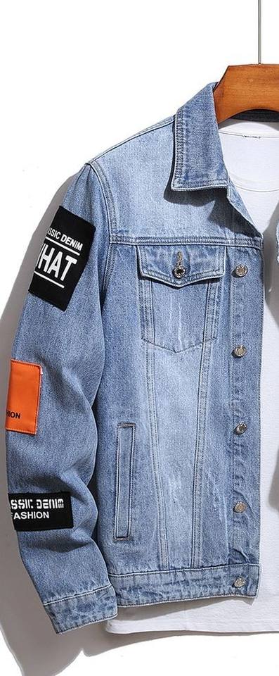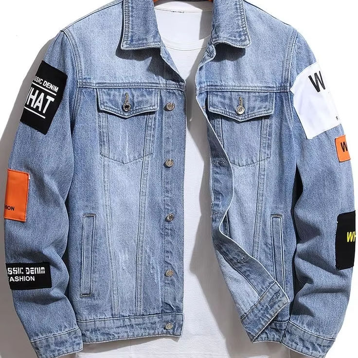 แจ็กเก็ตยีนส์สไตล์วินเทจของผู้ชายผ้าคอตตอน100% แอซิดสำหรับฤดูหนาวผ้าปักลำลอง
