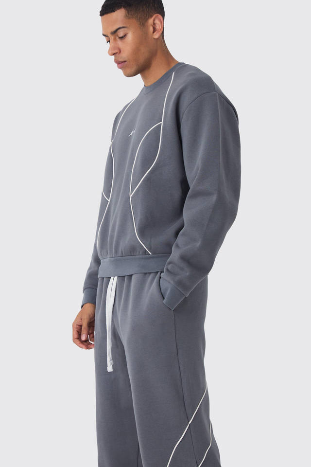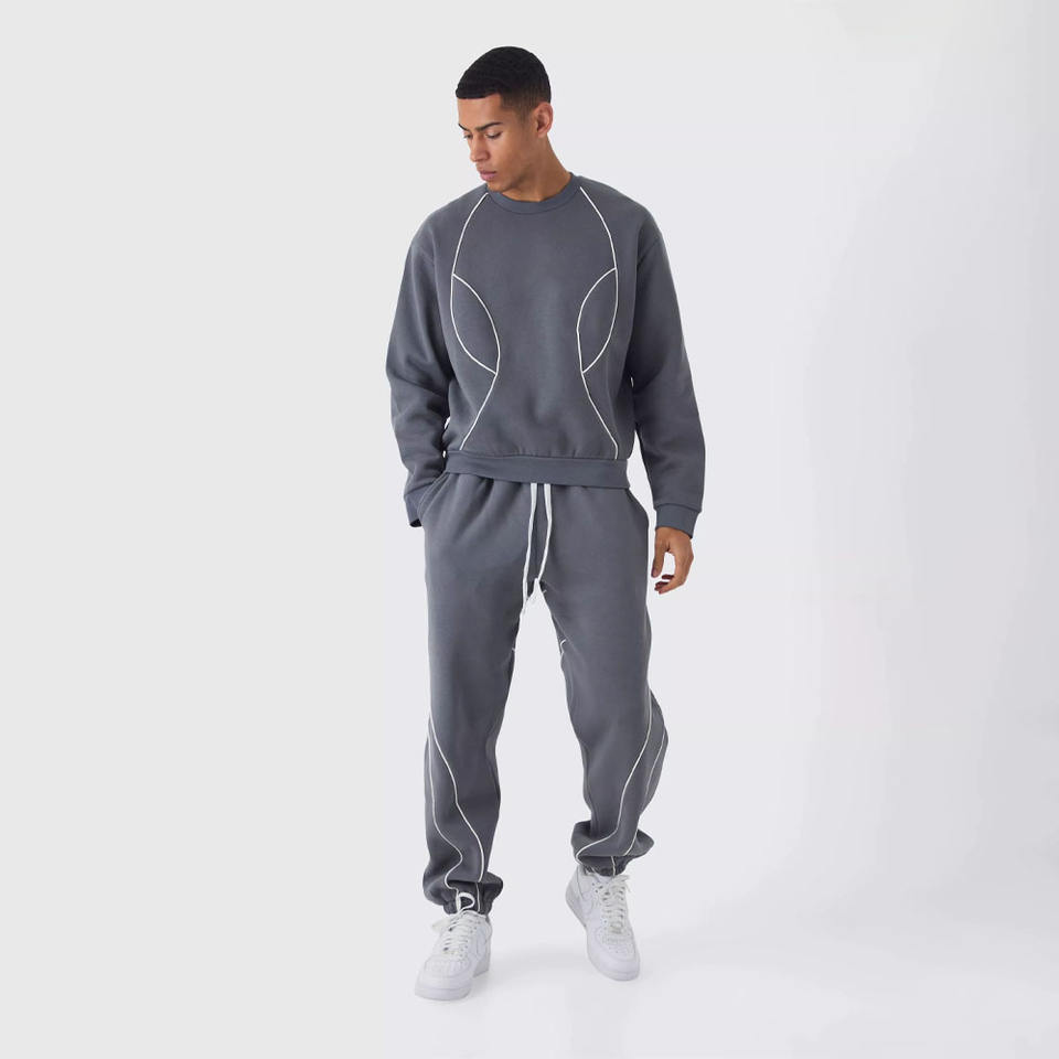 ชุดวอร์มผู้ชาย เสื้อสเวตเชิ้ตคอกลมผ้าฝ้ายคุณภาพสูง กางเกงจ็อกเกอร์ ผ้าฟลีซเนื้อนุ่ม ดีไซน์ตะเข็บตัดสีแบบกำหนดเอง สำหรับออกกำลังกายในฤดูหนาว