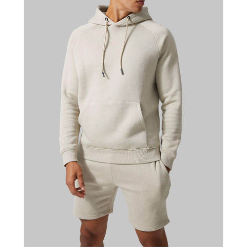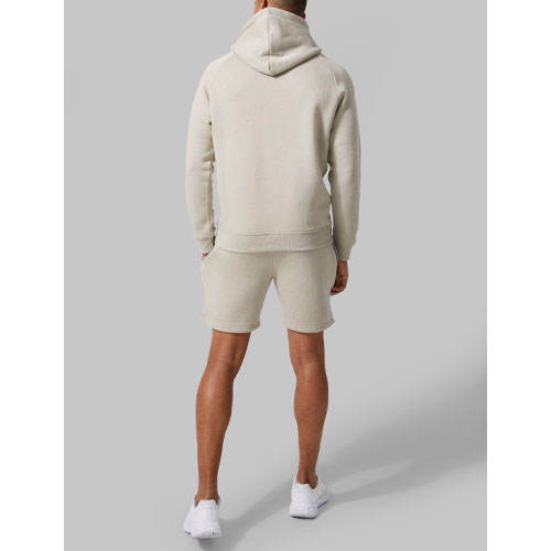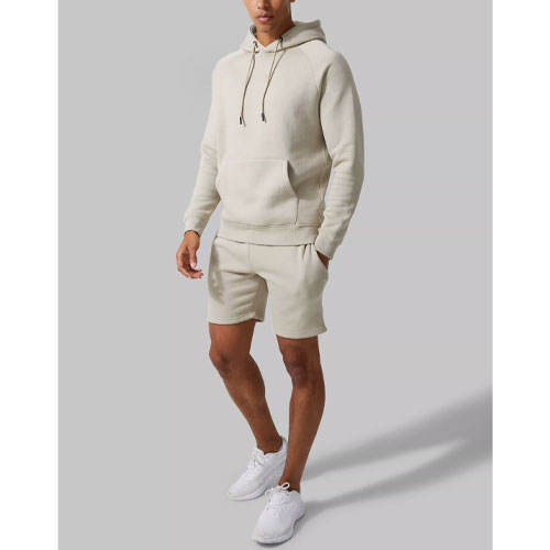 Men's High Quality Cotton Fleece Hoodie & Shorts Set Custom Logo Streetwear Tracksuit Plus Size Solid Color Summer Outfit