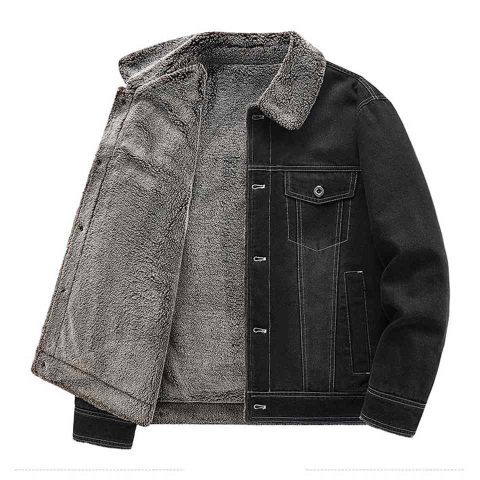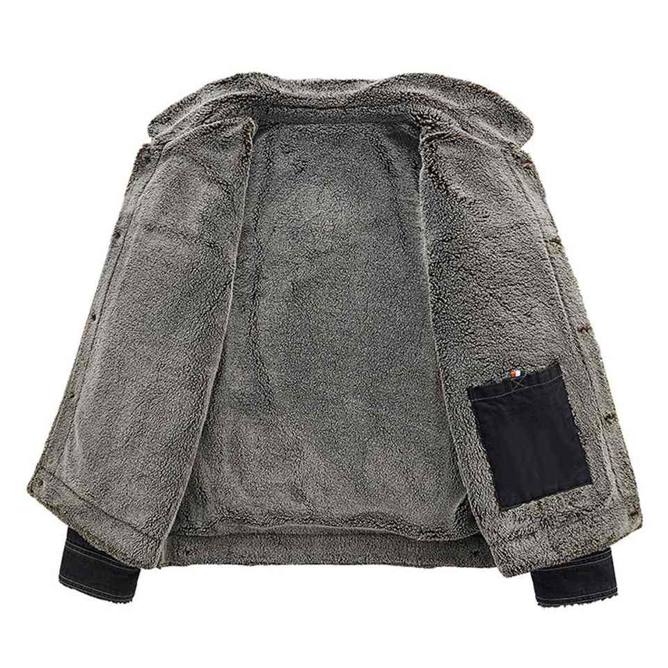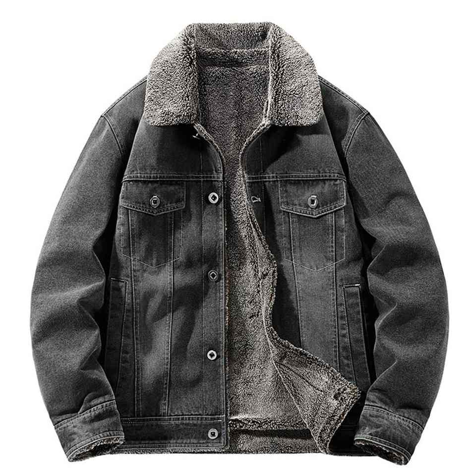 แจ็คเก็ตยีนส์เดนิมบุขนสัตว์คุณภาพสูงสำหรับผู้ชาย แจ็คเก็ตยีนส์กันหนาวแบบมีซับใน แจ็คเก็ตยีนส์เดนิมลำลอง
