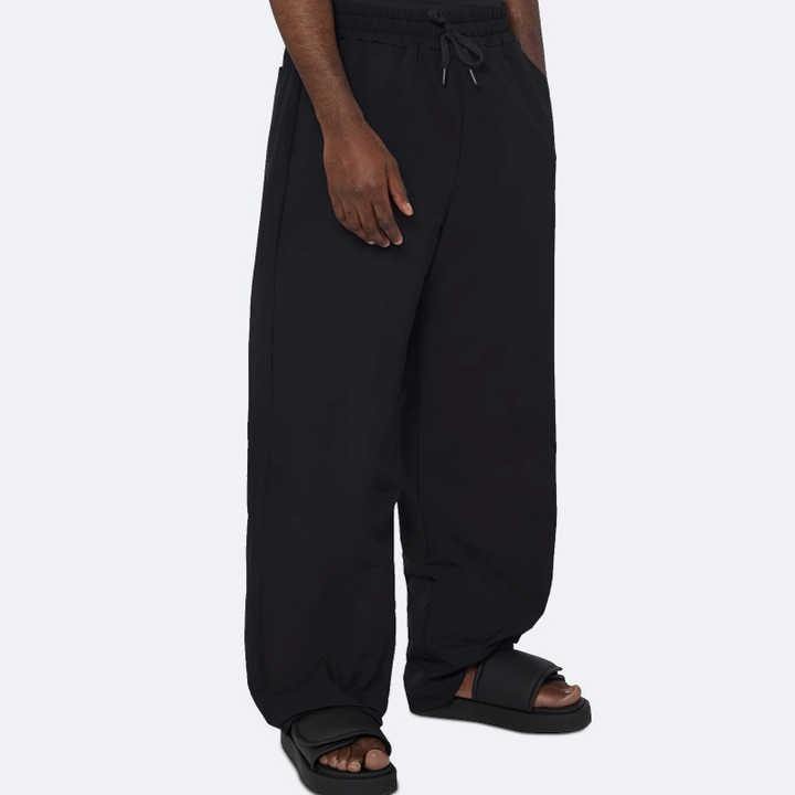 กางเกงวิ่งขายาวสำหรับผู้ชายกางเกงวอร์มทรงซ้อนแบบลำลองเอวยางยืดตกแต่งแบบเย็บปะสไตล์วินเทจ