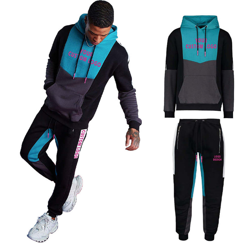 ชุดออกกำลังกายสำหรับผู้ชายเสื้อมีฮู้ดและกางเกงซับเหงื่อสำหรับใส่เล่นกีฬาในยิมชุดวอร์มสำหรับฤดูหนาวพิมพ์โลโก้ตามสั่ง