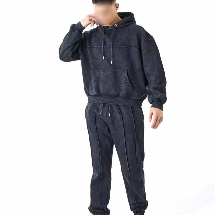 Men's High Quality Custom Logo Acid Wash Tracksuit Set 2-Piece Hoodie Sweatpants Jogger High Acid Wash Tracksuit