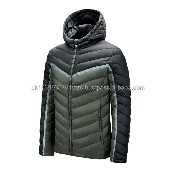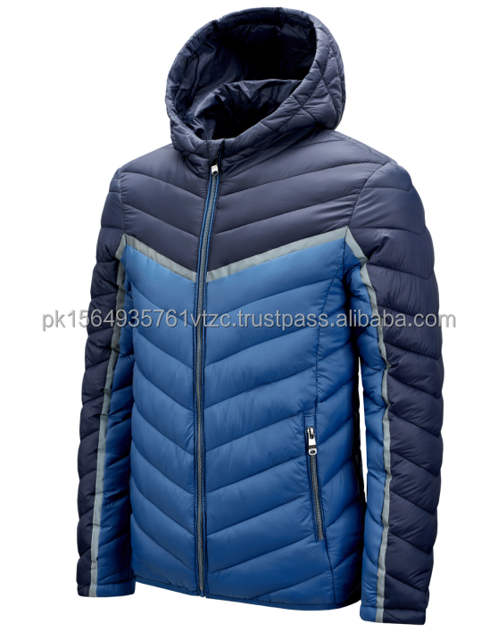 แจ็กเก็ตขนเป็ดสำหรับผู้ชายเสื้อโค้ทกันหนาวสีฟ้าแวววาวพร้อมไส้ผ้าฝ้ายตัวเลือกขนาดพิเศษ