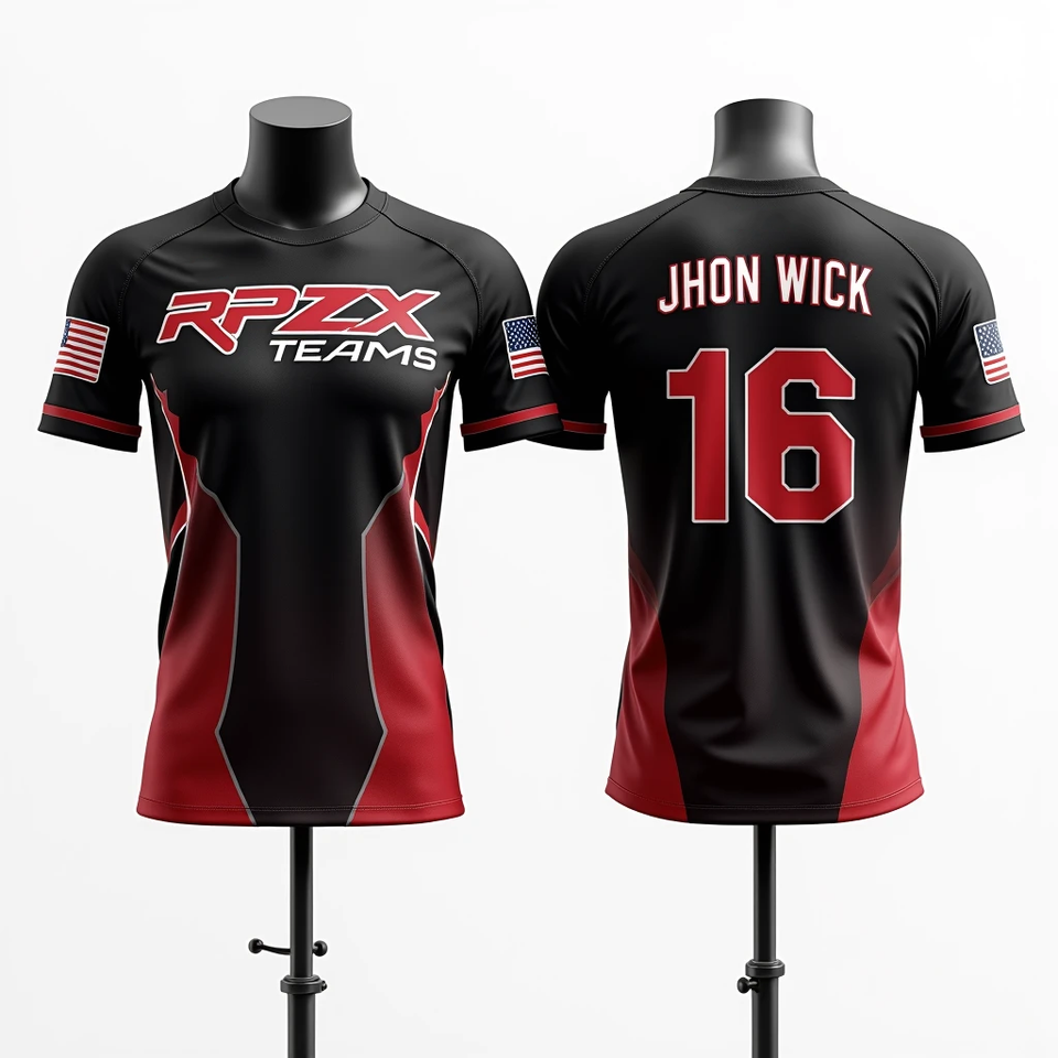 ชุดเสื้อผ้ากีฬาซับลิเมตของผู้ชายเสื้อคอกลมผ้าตาข่ายระบายอากาศสำหรับซอฟท์บอลฟุตบอลตกปลาพิมพ์ลาย