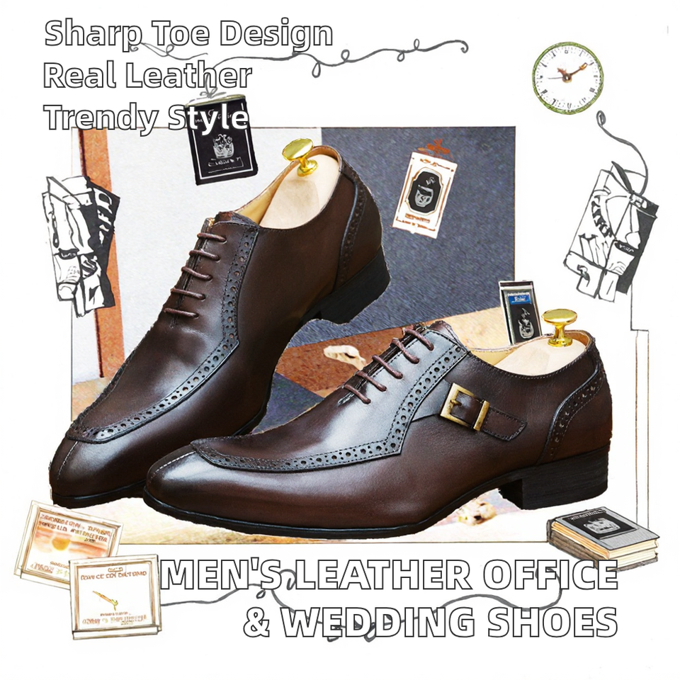 รองเท้าคลาสสิกใส่สบายทำจากหนังแท้สีน้ำตาลของผู้ชาย EVA Alvin