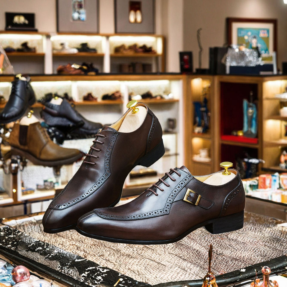 รองเท้าผู้ชายหนังสีน้ำตาลคลาสสิก