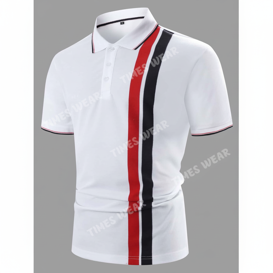 เสื้อโปโลลายขวางแขนสามส่วนสำหรับผู้ชาย
