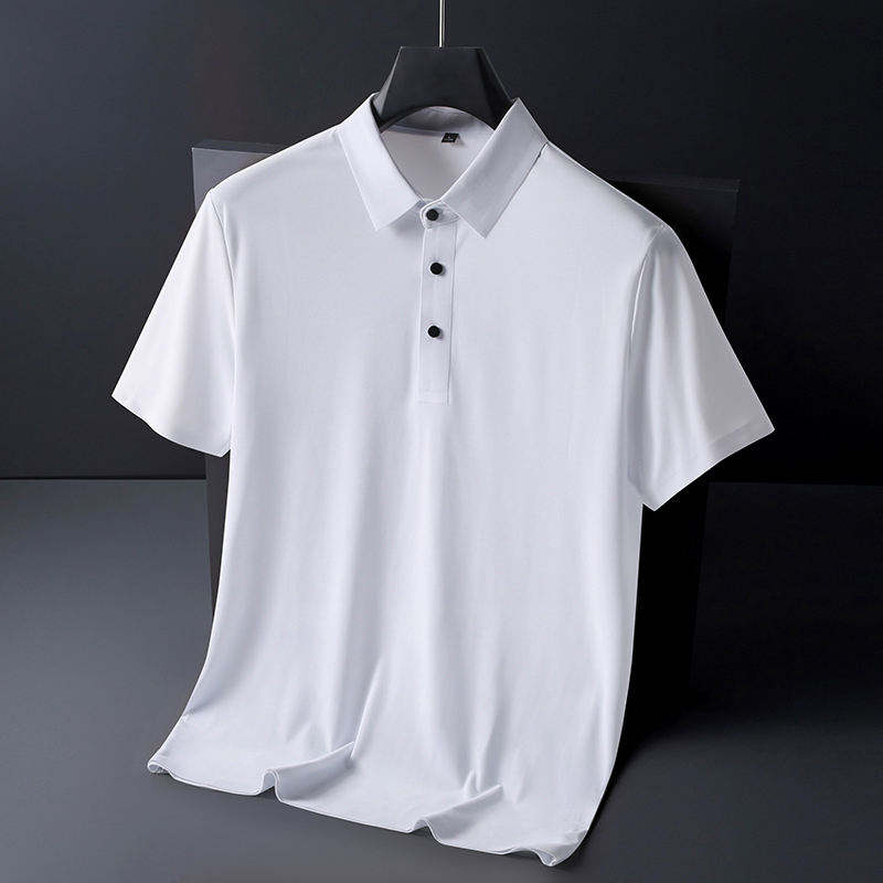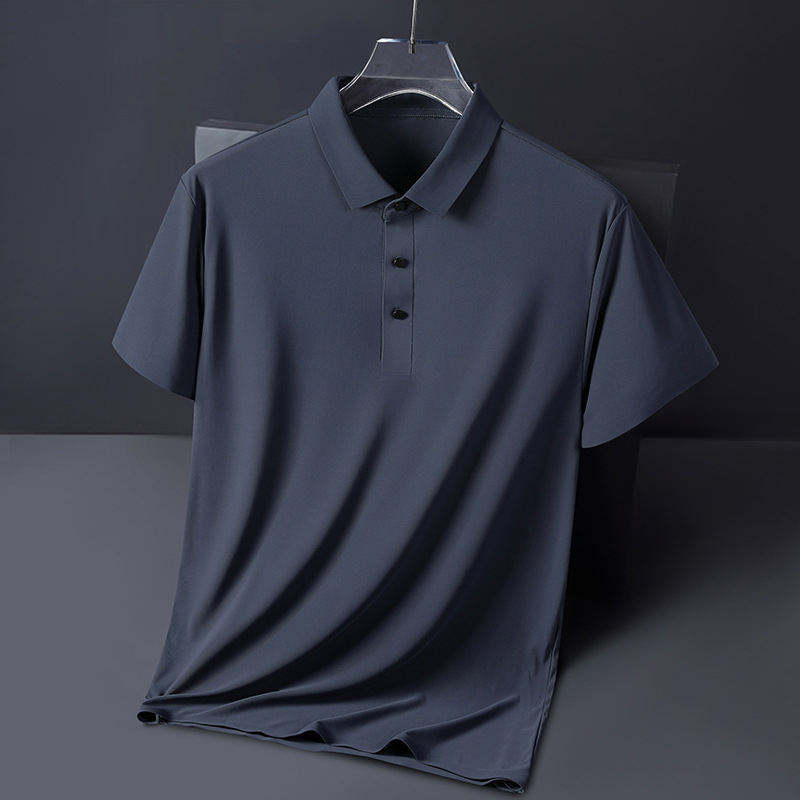 เสื้อโปโลผ้าไหมน้ำแข็งถักคุณภาพสูงสำหรับผู้ชาย สไตล์ลำลอง สีพื้น แขนสั้น ระบายอากาศได้ดี เหมาะสำหรับฤดูร้อน