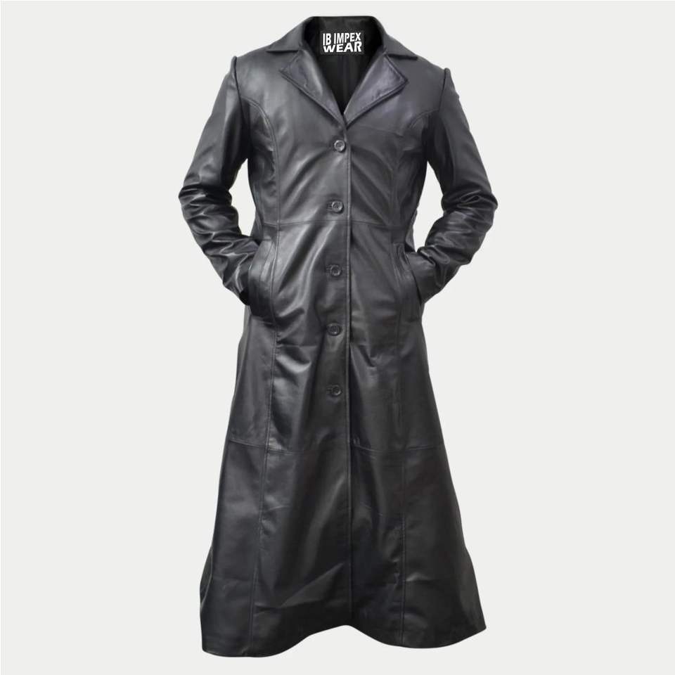 เสื้อโค้ทหนังผู้ชายคุณภาพสูงแบบยาว มีกระเป๋าข้าง สำหรับฤดูหนาว ราคาขายส่ง เสื้อโค้ทหนังคุณภาพดี