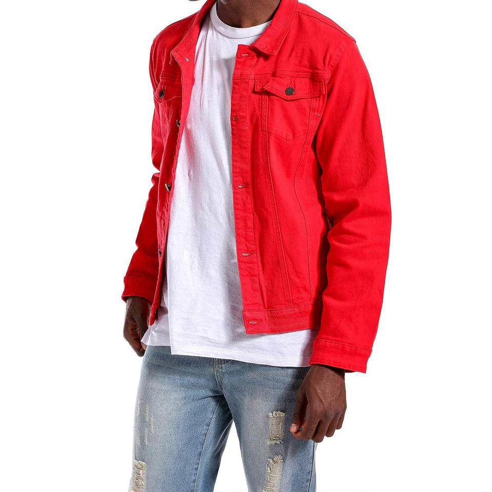 แจ็กเก็ตยีนส์แขนยาวสำหรับผู้ชาย, เสื้อแจ็กเก็ตผ้าเดนิมแขนยาวมีปกสไตล์ลำลองสำหรับฤดูหนาวฤดูใบไม้ผลิ