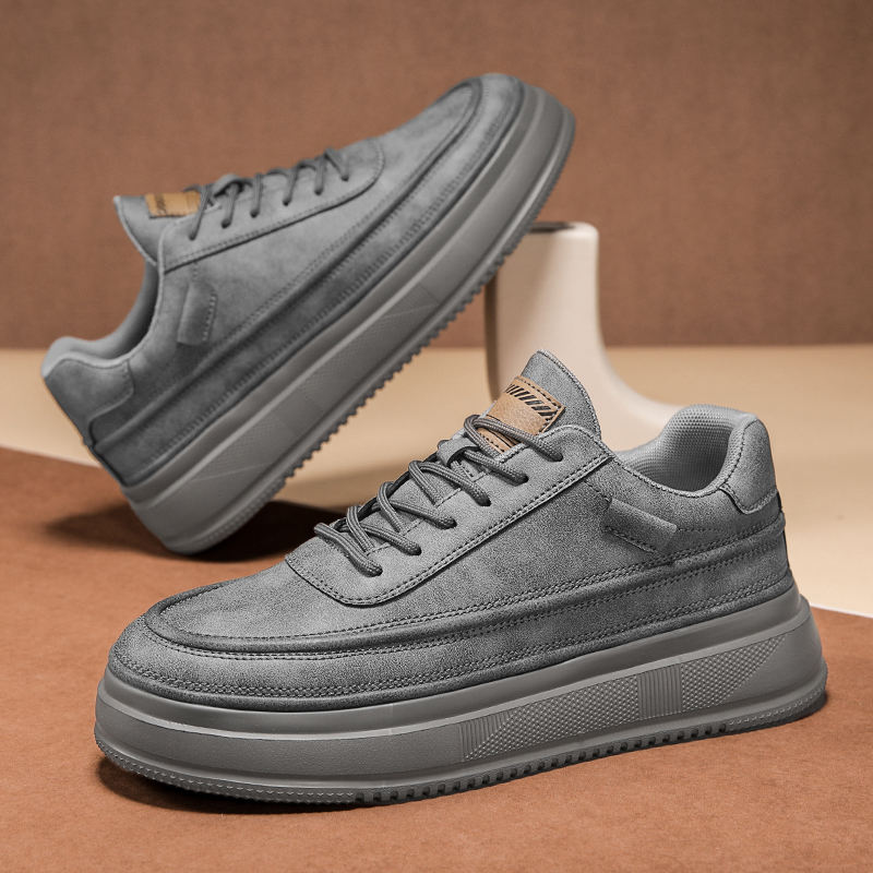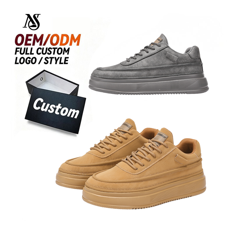 รองเท้าสเก็ตลำลองพื้นหนาหนังไมโครไฟเบอร์คุณภาพสูงสำหรับผู้ชาย รองเท้าผ้าใบอเนกประสงค์เพิ่มความสูง
