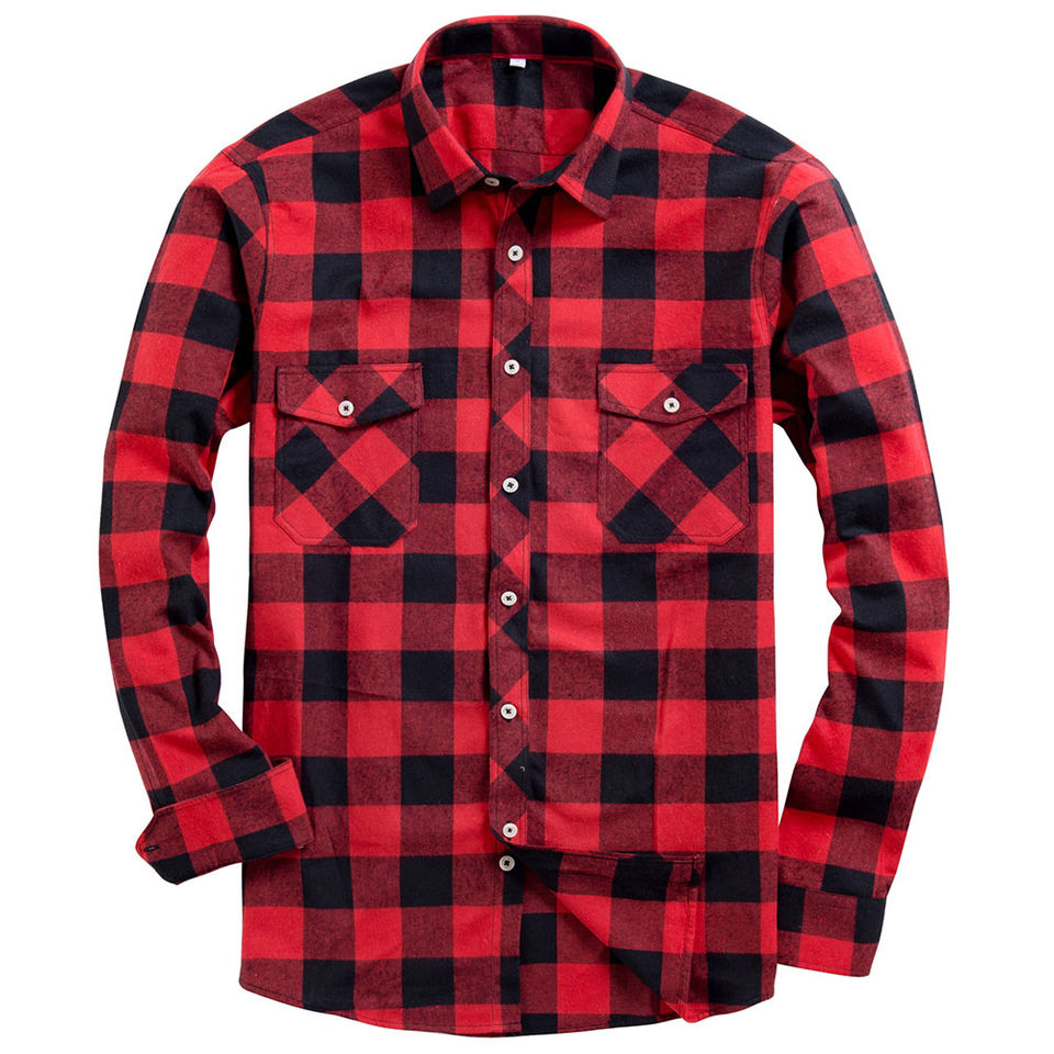 เสื้อเชิ้ตผู้ชายผ้าฟลานเนลผสมโพลีเอสเตอร์/คอตตอน คุณภาพสูง แขนยาว ทรงปกติ แห้งเร็ว ระบายอากาศดี สไตล์ลำลอง