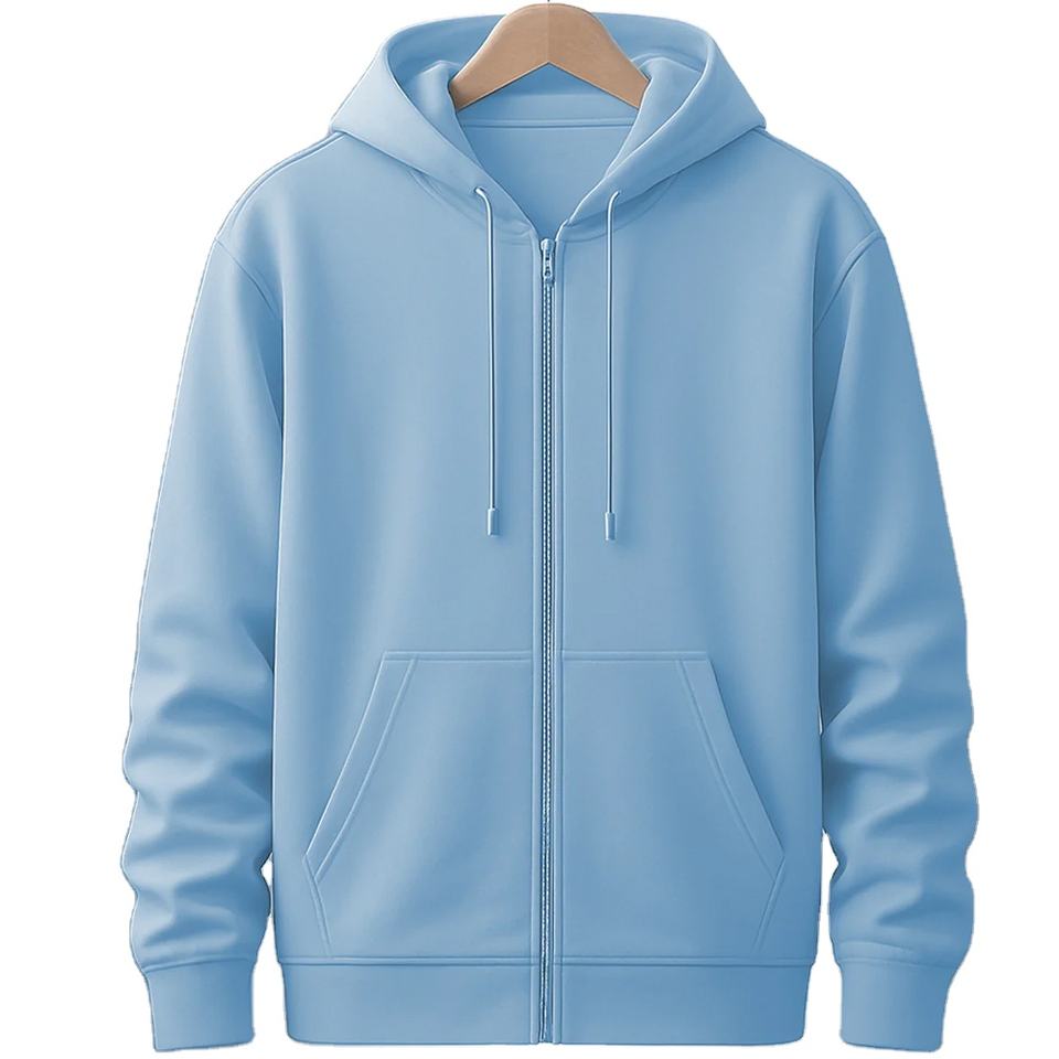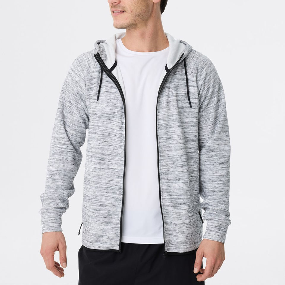 เสื้อฮู้ดดี้ผู้ชายคุณภาพสูง ผลิตจากโพลีเอสเตอร์และผ้าเทอร์รี่ด้านใน รับสกรีนโลโก้หรือผลิตแบบ OEM ไซส์ใหญ่ ซิปแบบเรียบ สีพื้น สำหรับฤดูใบไม้ผลิและฤดูใบไม้ร่วง