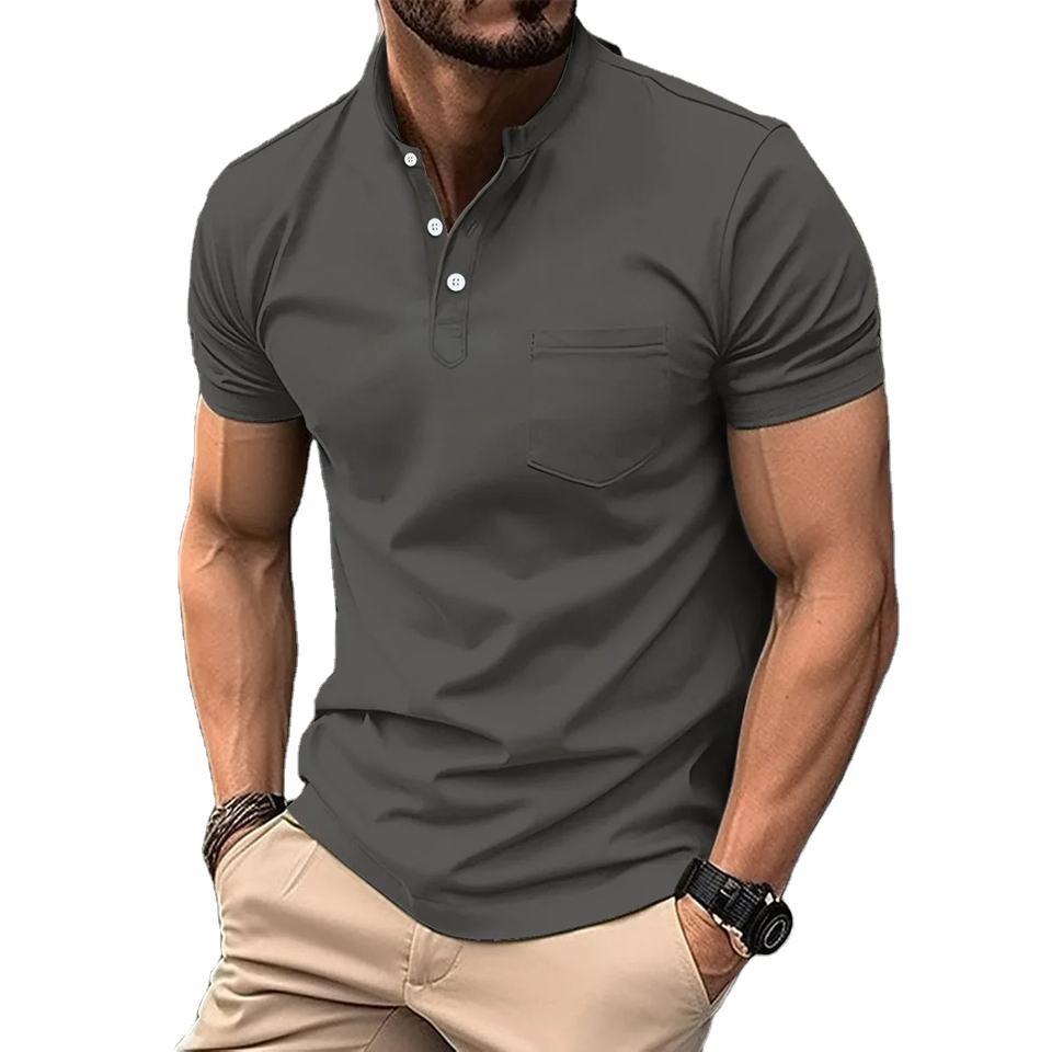 เสื้อโปโลผู้ชายแบบแห้งเร็วเสื้อลำลองแขนสั้นระบายอากาศได้สีทึบเรียบง่าย