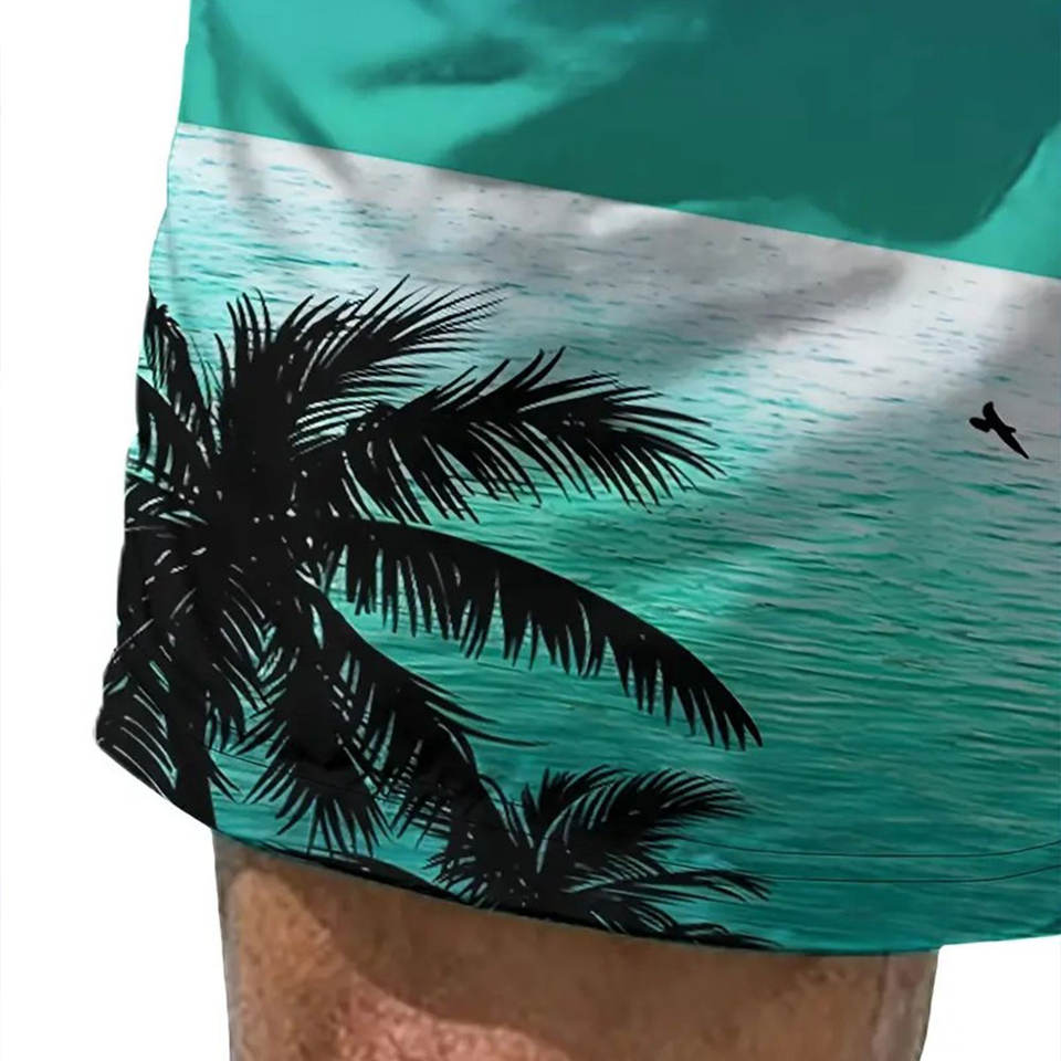 กางเกงว่ายน้ำขาสั้นผู้ชายกางเกงว่ายน้ำ100% กันน้ำแห้งเร็วเป็นมิตรกับสิ่งแวดล้อมพิมพ์ซับลิเมชันฤดูร้อน