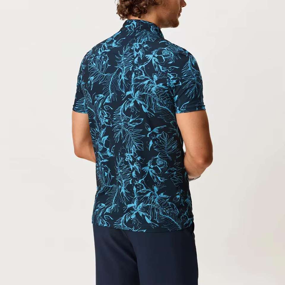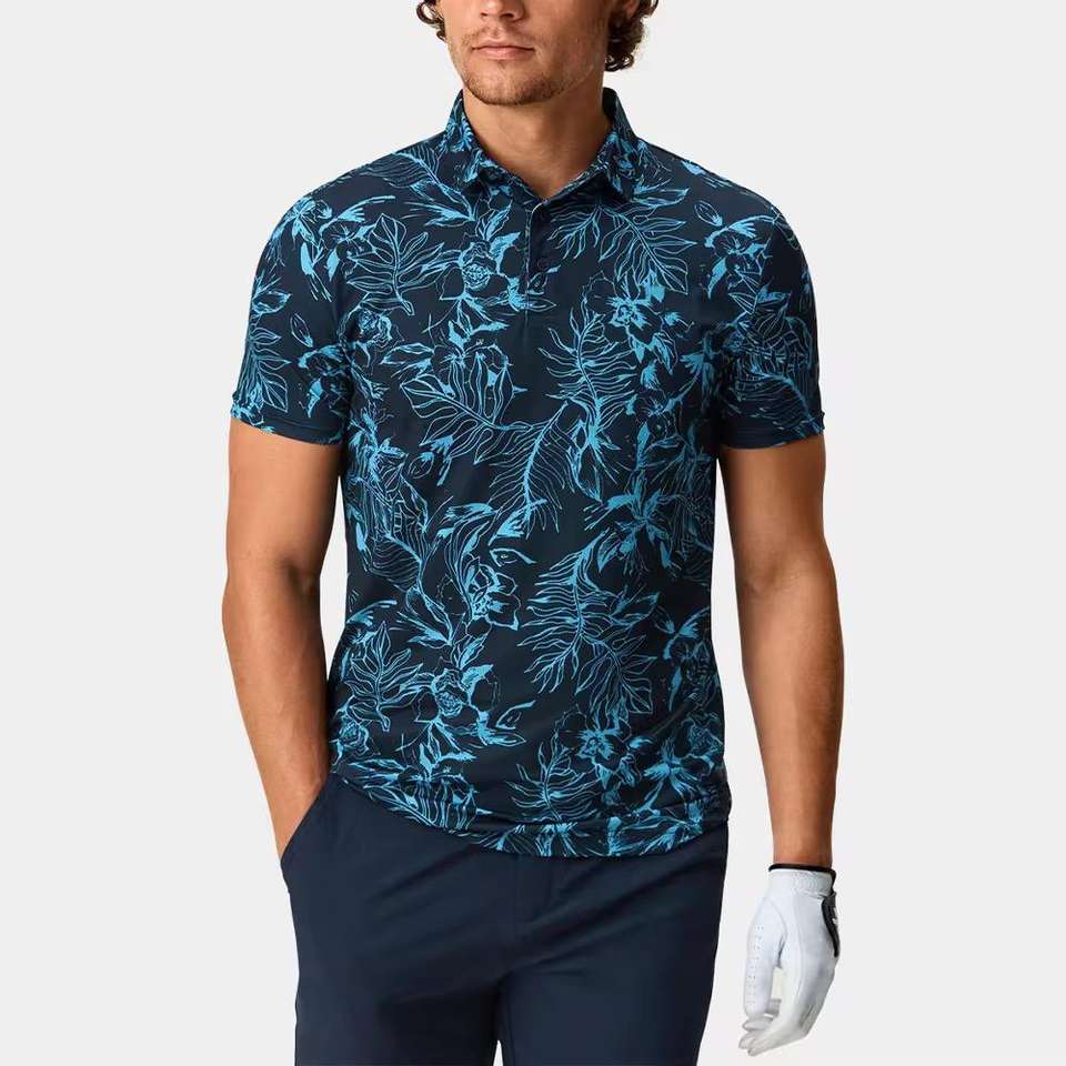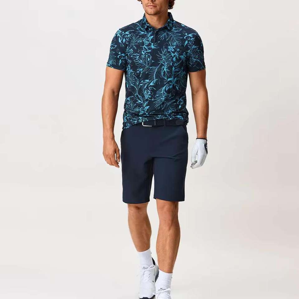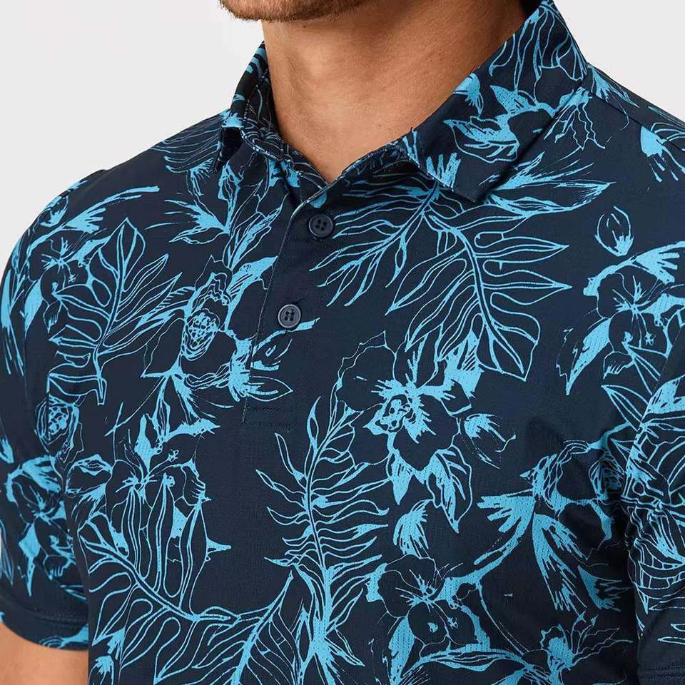 เสื้อยืดโปโลแบบแห้งเร็วของผู้ชายผ้า100% คอตตอนโพลีเอสเตอร์สีเข้มระบายอากาศได้ดีผ้าถักแบบสั้น