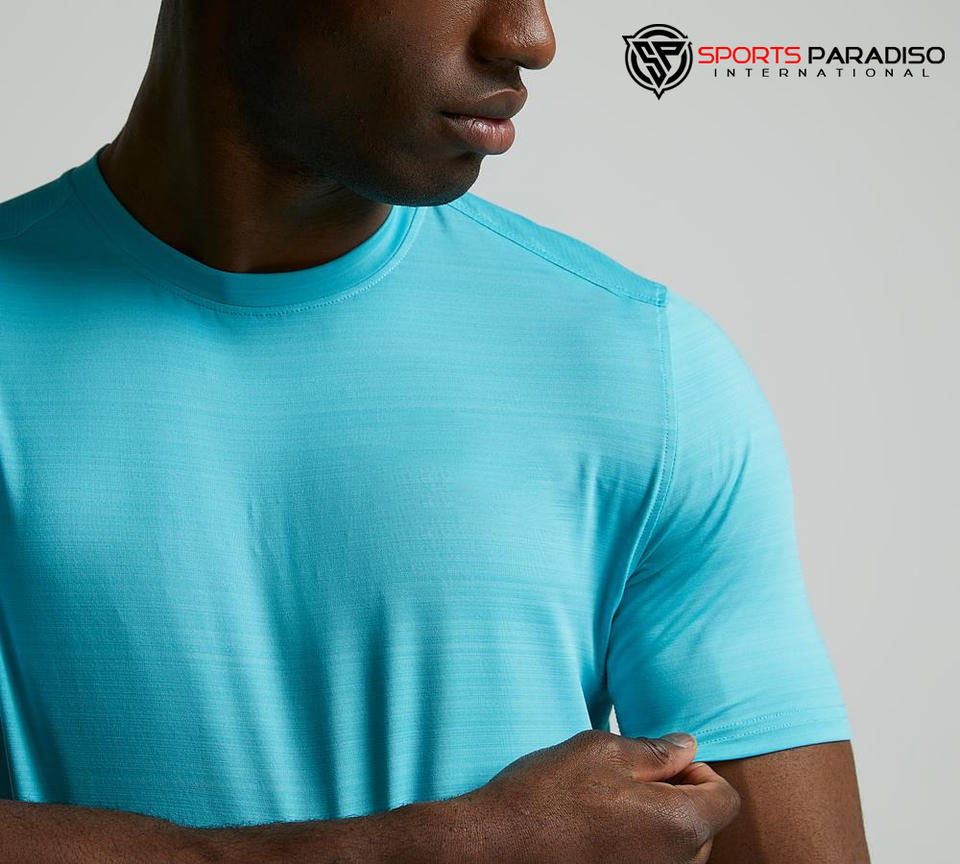 เสื้อยืดยิมแห้งเร็วของผู้ชายเสื้อกีฬาระบายอากาศได้ดีแบบปกตินิ่มสำหรับฝึกกล้ามเนื้อ