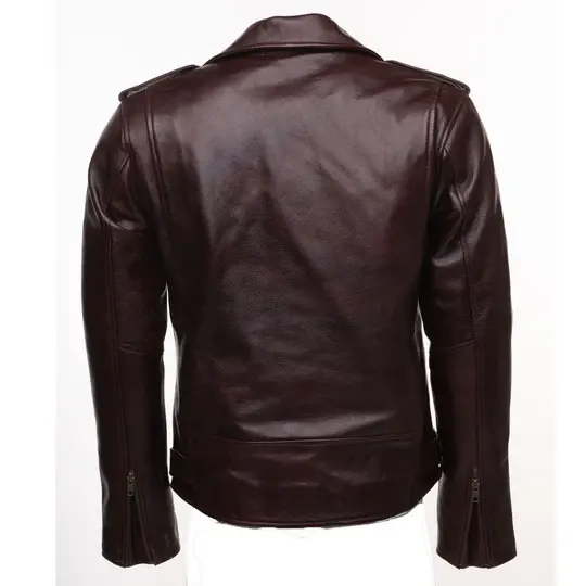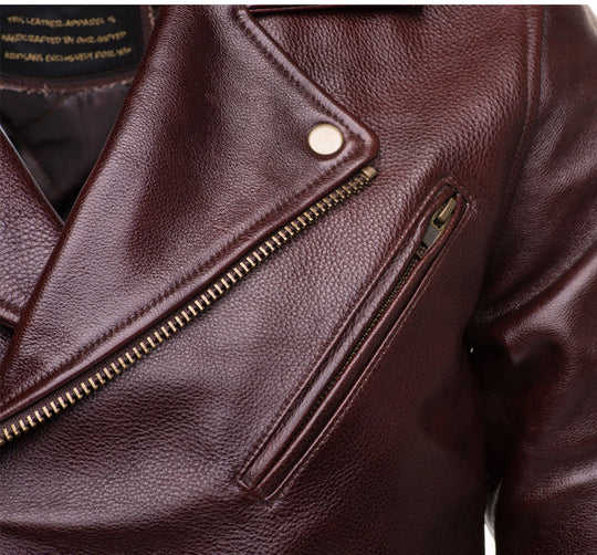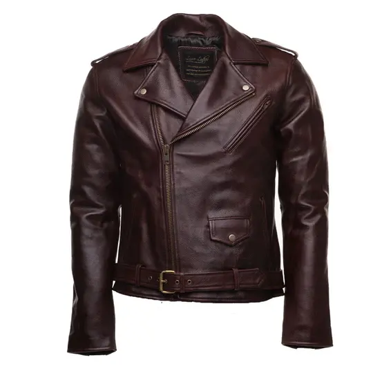 Men's High Quality Sheep Skin Leather Jacket Biker Style with Stand Collar Waist Belt Formal Stylish Blood Color Leather Jacket