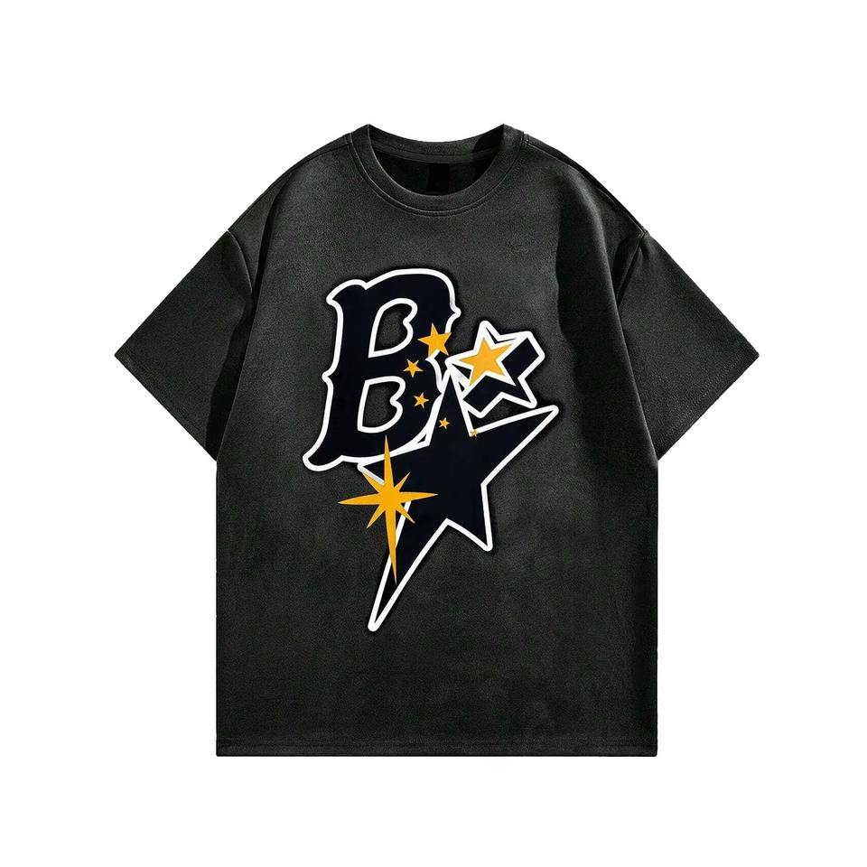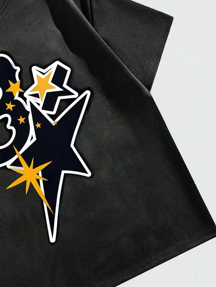 เสื้อยืดแขนสั้นผู้ชาย พิมพ์ลายสกรีนคุณภาพสูง ผ้าฝ้าย 100% ลายตัวอักษรและดาวห้าแฉก สวมใส่สบาย เป็นมิตรต่อสิ่งแวดล้อม ระบายอากาศได้ดี