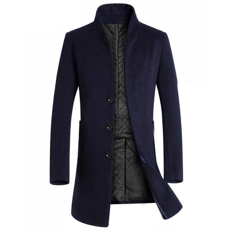 เสื้อโค้ทเทรนช์ผู้ชายคุณภาพสูง ผ้าขนสัตว์หนานุ่ม ทรงเข้ารูป บุด้วยโพลีเอสเตอร์ ตกแต่งกระดุม กันน้ำ สวมใส่สบาย